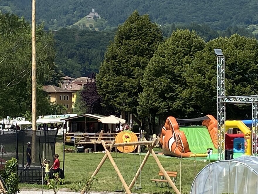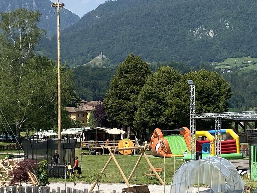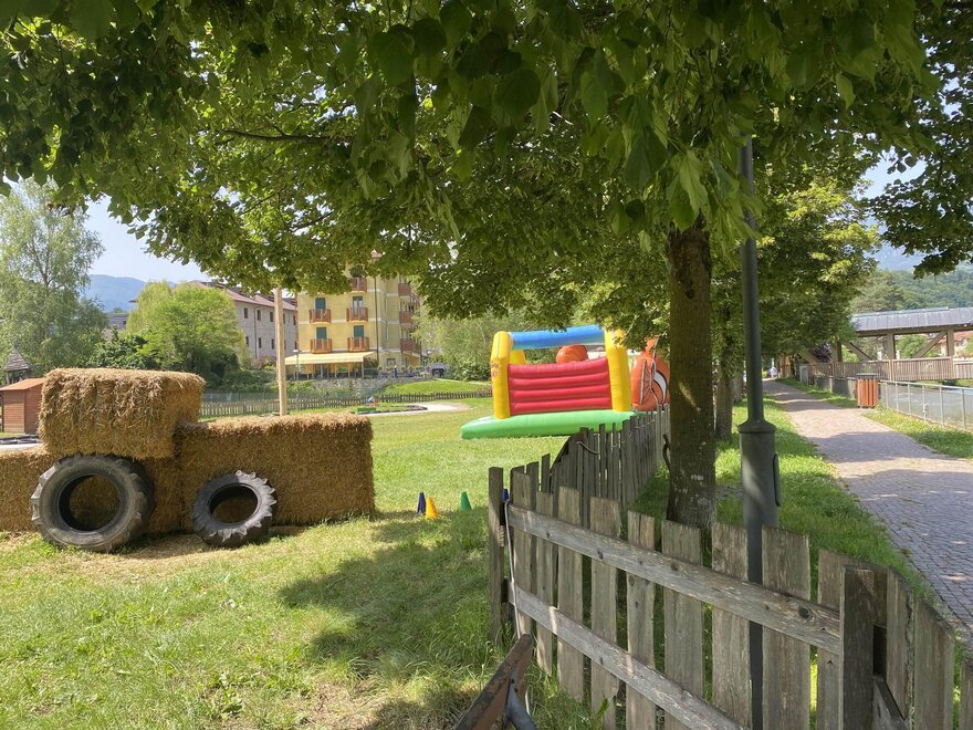 Nel paese sono presenti tre supermercati, un ufficio postale, un bancomat, un parco naturale, un bar, una pizzeria; gelateria; stazione centrale degli autobus, due aree con giostre per bambini con animatori, concerti con cassa e ballo serale, noleggio bici MTB (piste ciclabili fino a Riva di Garda e Madonna di Campiglio), una passeggiata nel bellissimo parco naturale della città; un viaggio in treno nelle valli più belle d'Italia.