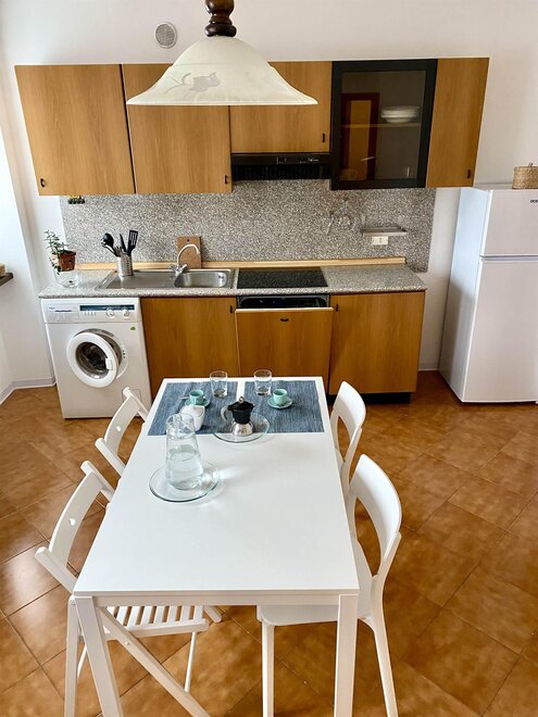 Lavatrice, lavastoviglie, telefono, ferro da stiro, piatti, pentole, posate, moka, piatti, bicchieri, stendibiancheria.Posto auto disponibile.