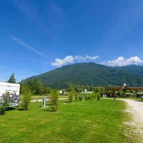 Area sosta camper sopra Diga Bissina, con servizi. Località Nudole