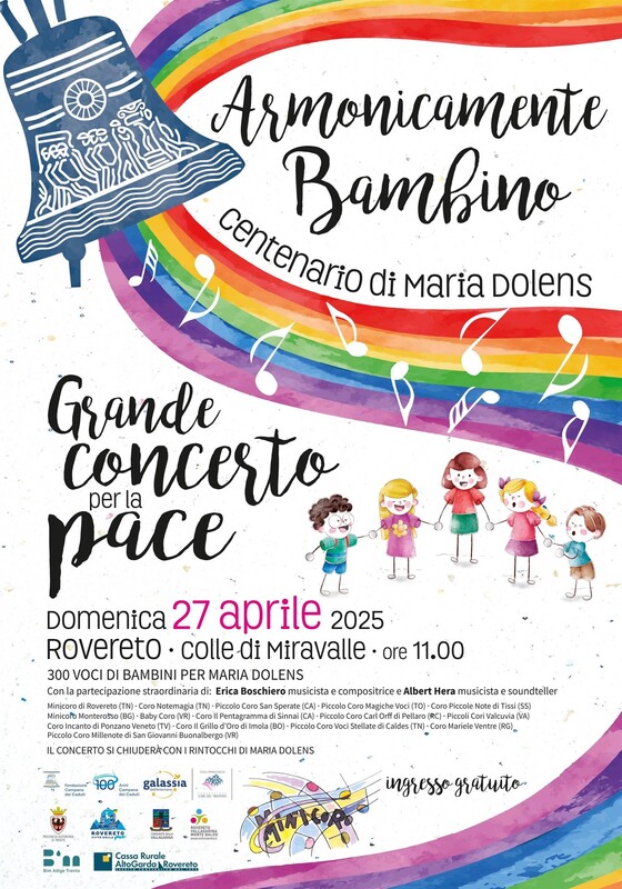 I cori di Armonicamente Bambino si esibiranno in un grande concerto per la pace alla Campana dei Caduti Maria Dolens, in occasione del suo centenario. Ore: 11:00 Luogo: Colle di Miravalle, Rovereto Ingresso gratuito.