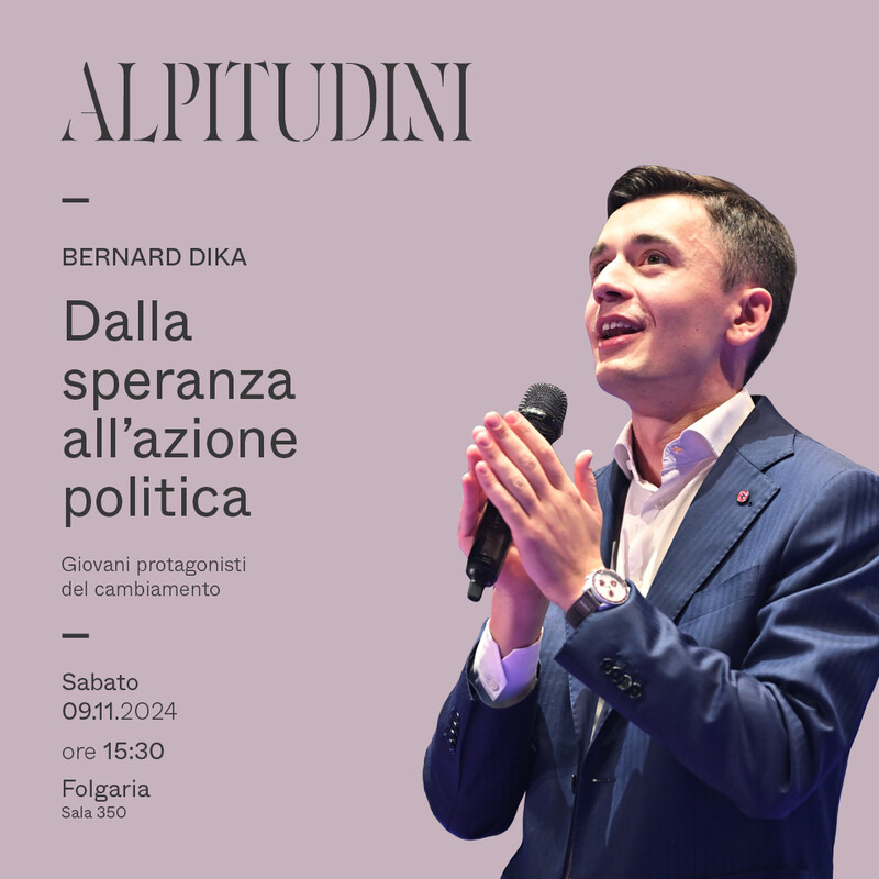 Ed è proprio con un giovane che si apre il secondo weekend di Alpitudini! Bernard Dika, nominato Alfiere della Repubblica Italiana dal Presidente Mattarella nel 2016, dal 2022 è Portavoce del Presidente della Regione Toscana Eugenio Giani e responsabile delle politiche regionali in materia di giovani, innovazione e del progetto “Giovanisì”, oltre che ideatore del Next Generation Fest. Con lui parleremo del futuro della democrazia, per promuovere la partecipazione civica e trovare nuove soluzioni alle sfide contemporanee.