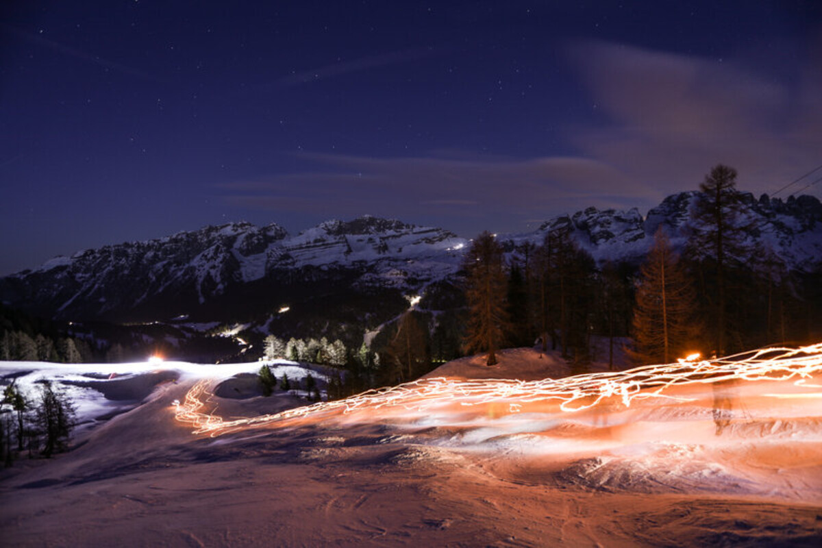 Nella Skiarea Campiglio Dolomiti di Brenta, la tua giornata in pista non ha mai fine. Sali in telecabina per una corsa speciale a chiusura impianti, goditi lo spettacolo delle Dolomiti di Brenta e dell' Adamello-Presanella al tramonto mentre gusti sfiziosi fingerfood durante un'apericena in terrazza nei rifugi più panoramici, e ridiscendi con sci ai piedi e fiaccola in mano accompagnato dai maestri di sci.