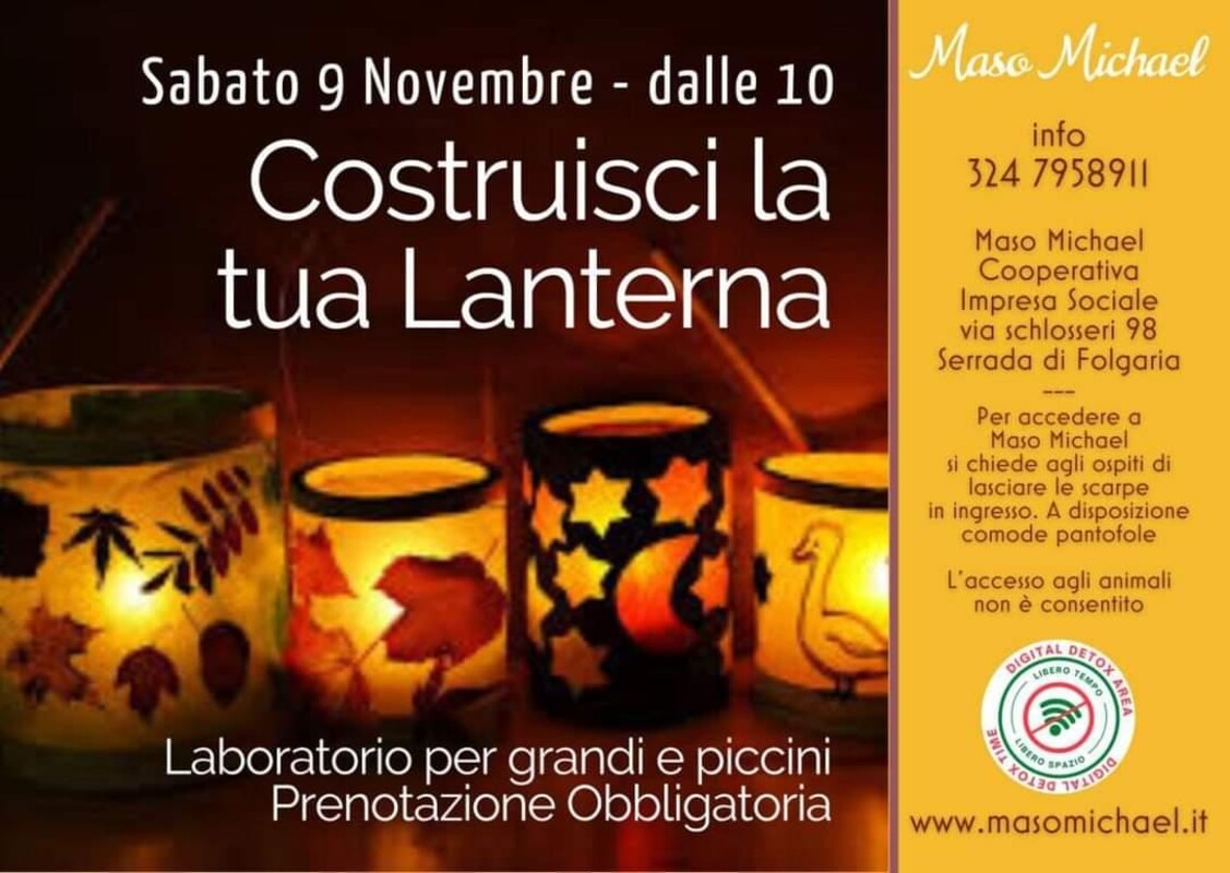 Laboratorio per grandi e piccini per costruire la propria lanterna. Laboratorio su prenotazione obbligatoria. Ore: 10:00 Luogo: Maso Michael, Serrada Info: 324 7958911