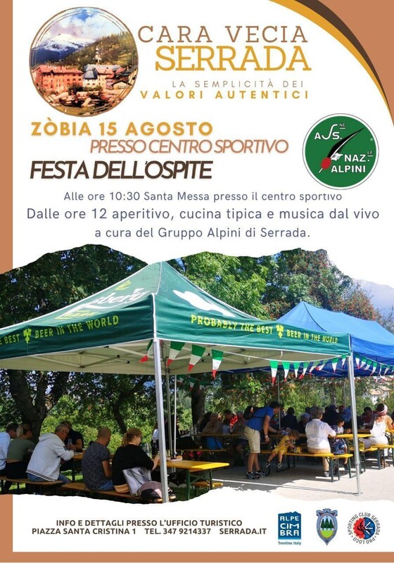 Festa dell Ospite a cura del Gruppo Alpini di Serrada. Santa Messa alle ore 10:30 presso il centro sportivo, a seguire aperitivo, cucina tipica e musica dal vivo