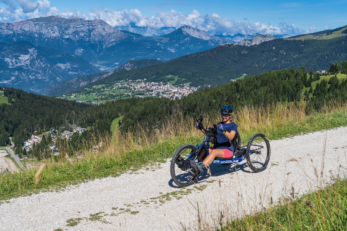 L'Handbike Experience è un'escursione guidata sull'Alpe Cimbra in Trentino con handbike MTB a pedalata assistita. Il modo migliore per visitare e conoscere l'Alpe Cimbra e tutti i suoi meravigliosi paesaggi è farlo attraverso i suoi percorsi bike e ancora meglio con una guida che potrà raccontare e descrivere le straordinarie manifestazioni della natura che abbracciano tutta l'Alpe.