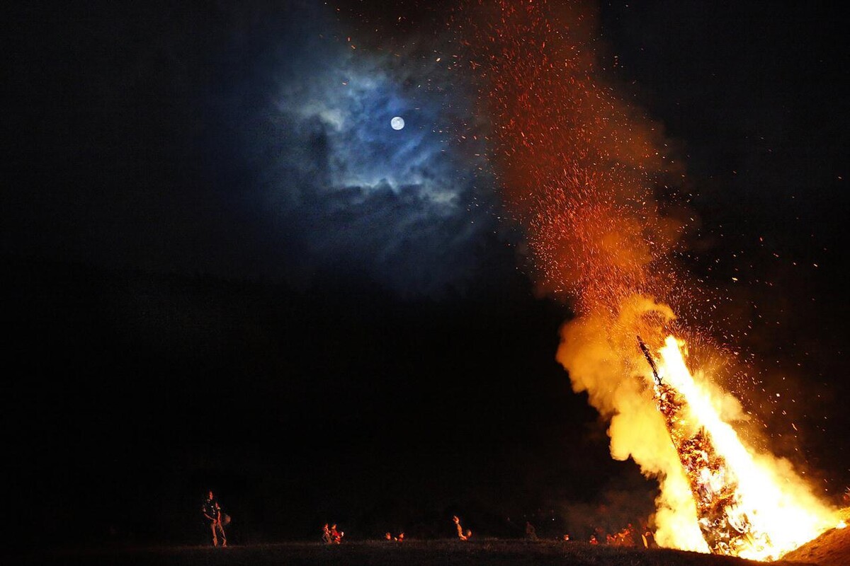 Le lunghissime lingue di fuoco illuminano e riscaldano tutto ciò che sta attorno ed i campanacci iniziano a suonare in un baccano assordante: la festa è scoppiata!