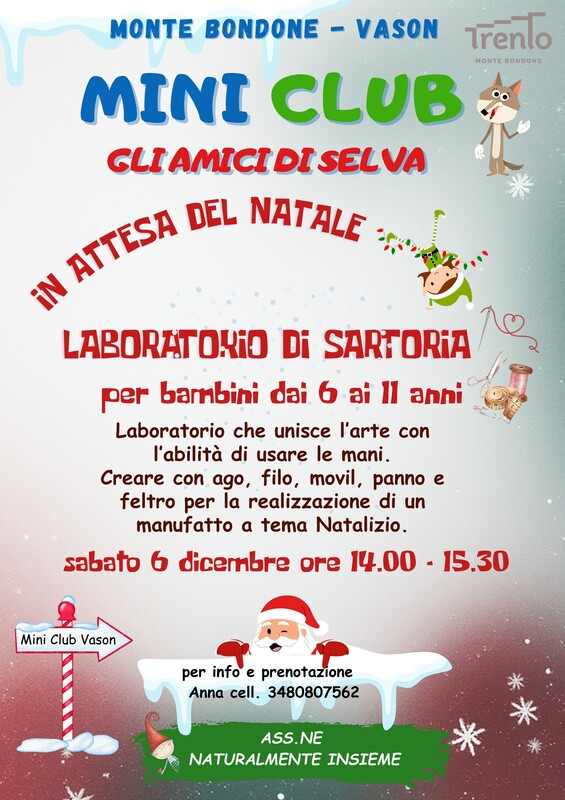Sabato 6 dicembre 2025 presso il miniclub "Gli amici di Selva" sul Monte Bondone si terrà un laboratorio di sartoria,