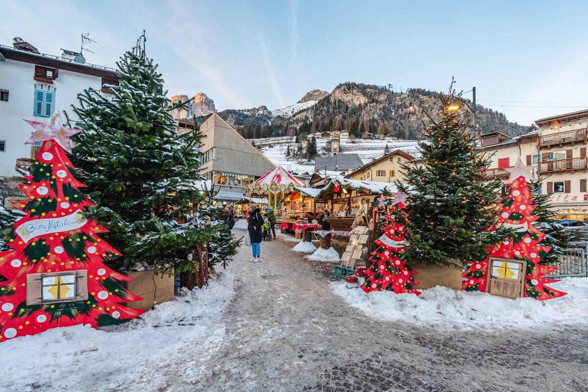 Bancarelle con manufatti, prodotti artistici e specialità gastronomiche ti aspettano nel paese della Val di Fassa con la migliore vista sul Sassolungo