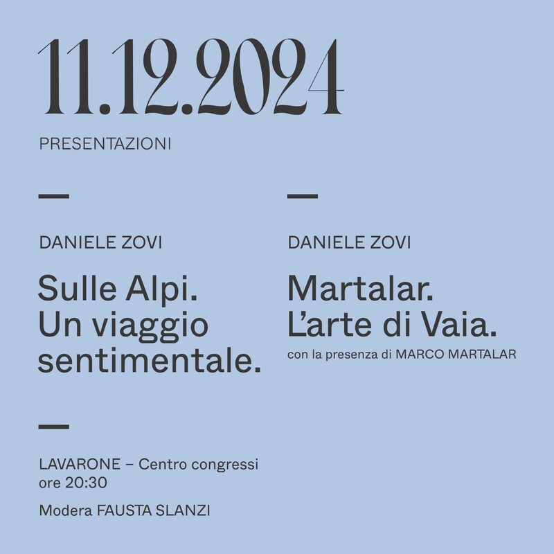 Presentazione del libro "Sulle Alpi, un viaggio sentimentale" e del catalogo "Martalar. L'arte di Vaia" con Daniele Zovi e Marco Martalar.