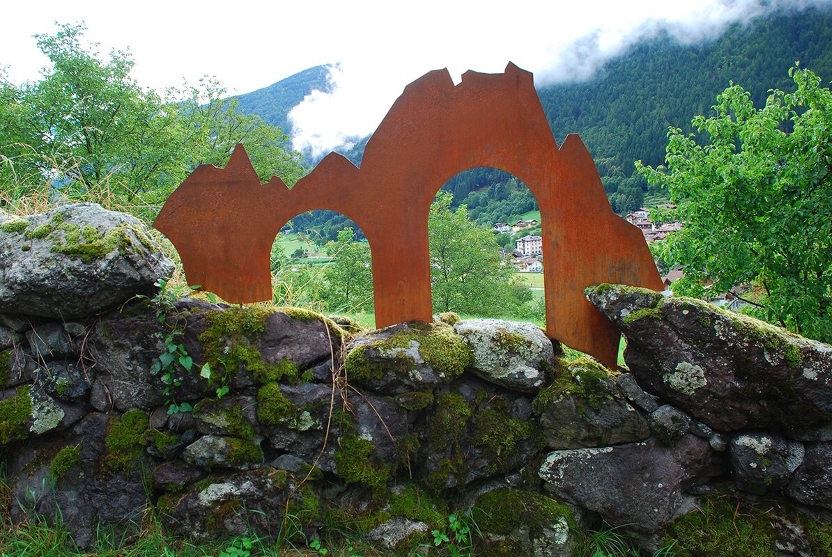 Lungo il percorso si trovano opere in corten accompagnate da aforismi di grandi pensatori.