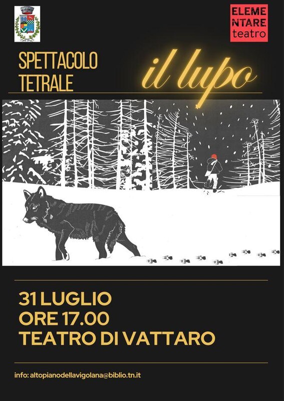 Spettacolo teatrale "Il lupo" a cura di Elementare Teatro. Ore: 16:30 Luogo: Teatro di Vattaro Info: altopianodellavigolana@biblio.tn.it