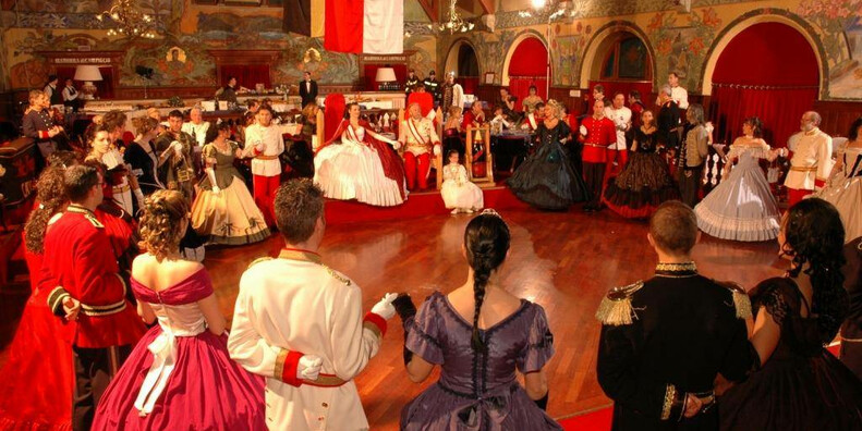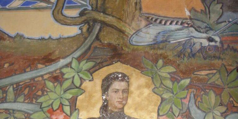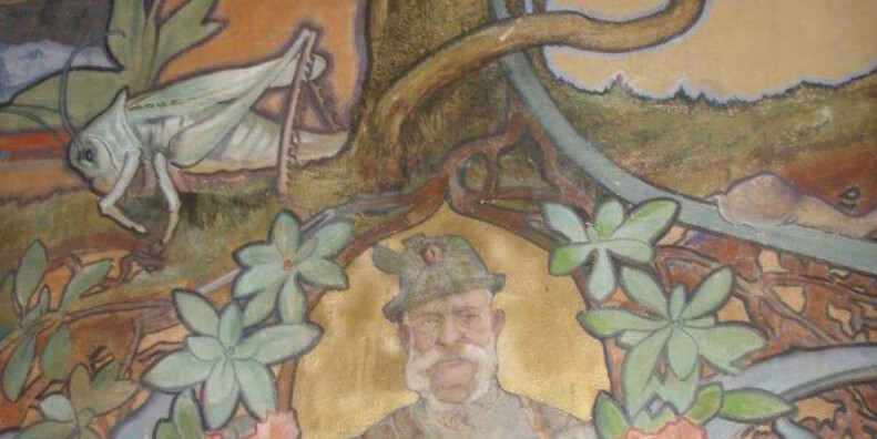 Sulla parete opposta, in due medaglioni dallo sfondo dorato, il pittore ha raffigurato i volti dei due augusti sovrani, la principessa Sissi e l’imperatore Franz Josef.