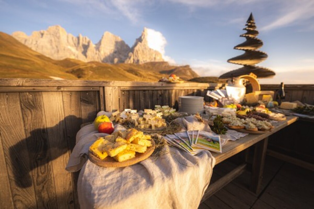 Ore 17.30 – Aperitivo narrato in una delle terrazze più iconiche delle Dolomiti con i formaggi d’alpeggio del Caseificio di Primiero e le bollicine di montagna Trentodoc.
