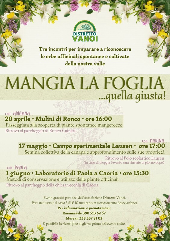 Eventi gratuiti per i soci dell''Associazione Distretto Vanoi. Per i non iscritti il costo è di €10,00 una tantum (tesseramento Associazione).