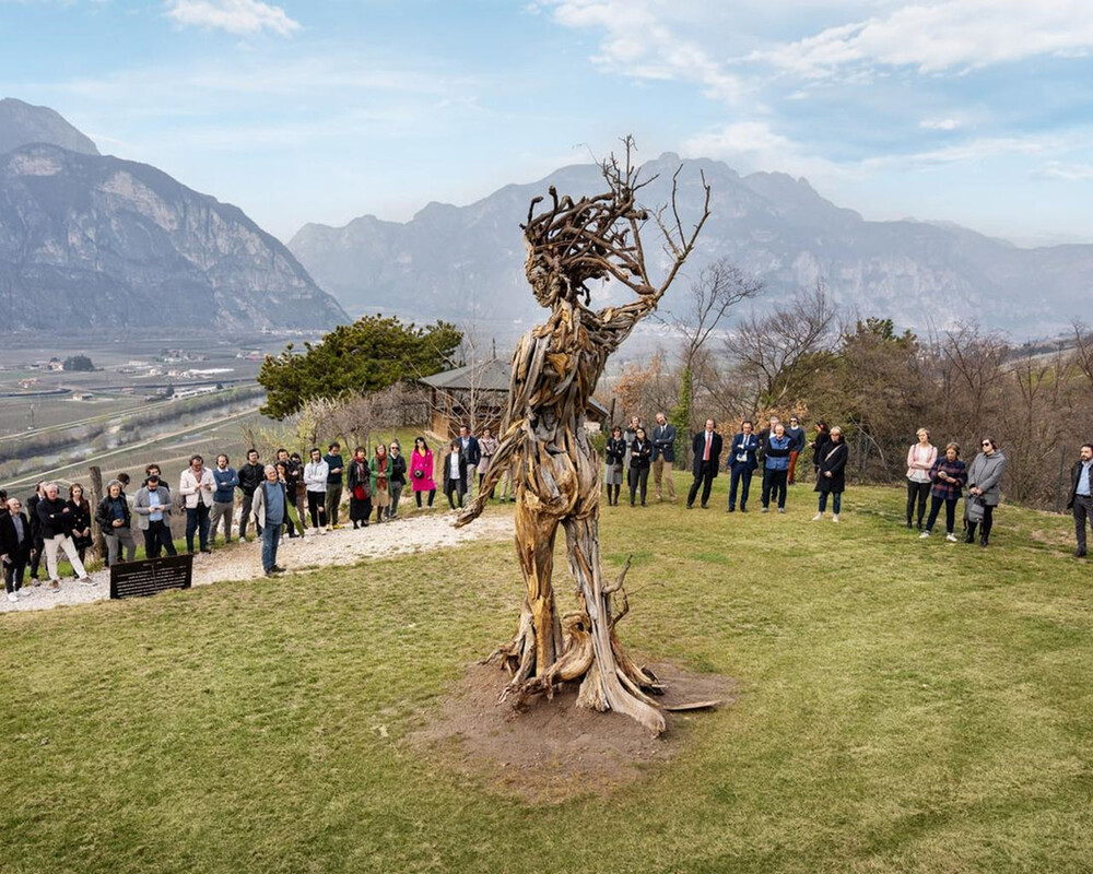 Con musica e parole esplorate la cantina e il vigneto, fino ad arrivare a lei: “Terra e Cielo”, opera realizzata dallo scultore Marco Martalar con il legno caduto durante la tempesta Vaia e i tralci delle nostre vigne più antiche.