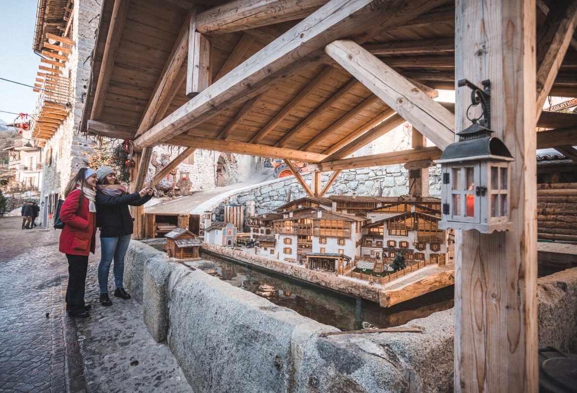 Lì dove tutto è rimasto com’era. Davanti agli androni che una volta ospitavano le stalle con mucche e capre. Sotto ai portech, i passaggi coperti che si intrecciano tuttora tra le abitazioni del borgo e che un tempo ospitavano greggi di passaggio e viaggiatori solitari. Nei vòlt, le cantine dove i contadini conservavano i prodotti della terra e i salumi della tradizione. Accanto ai camini collocati sui muri esterni delle case, lontani dai tetti di paglia dei nostri nonni e delle nostre zie. Lungo le stradine in salesà, un rustico sottofondo di sassi irregolari arrotondati dagli zoccoli e dalla pioggia. Ai piedi del campanile e nella piazza centrale di Rango, davanti ai volti della gente del posto. È qui che il Natale è una fiaba da leggere con gli occhi.