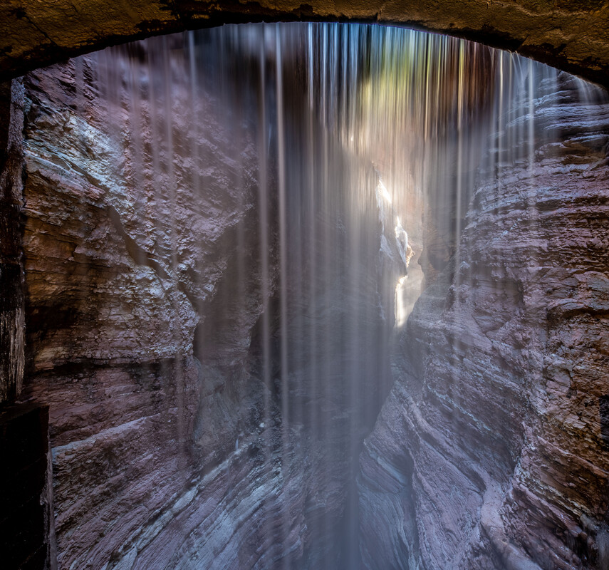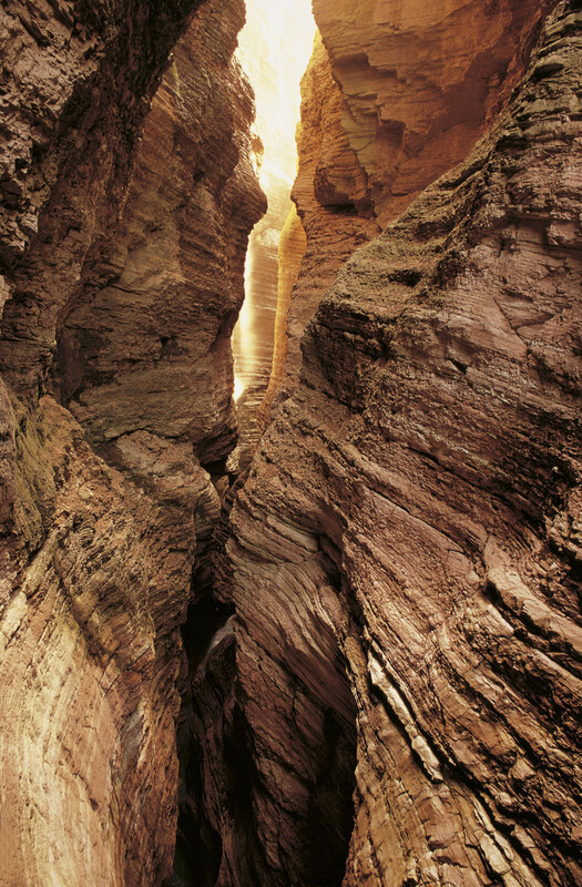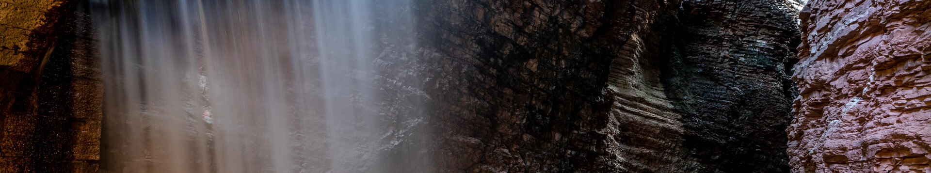 L’orrido è una gola profonda: pareti alte, distanza tra i lati che in alcuni tratti si restringe, andamento sinuoso. La roccia affiora con tonalità calde, dal rosato al mattone, segnate da strati e piccole fratture. Tra gli anfratti crescono felci e muschi, che beneficiano dell’umidità costante. Dalle passerelle osservi come l’acqua ha scavato i livelli più teneri, lasciando sporgenze e nicchie. Quando il sole entra in gola, gli spruzzi formano velature che cambiano il colore della parete. Se ami la fotografia, qui trovi inquadrature ravvicinate: dettagli di roccia, venature, gocce in sospensione. È un invito a guardare lento, senza fretta.