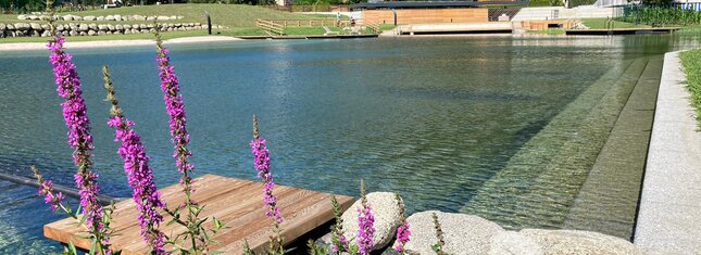 In un’area dedicata si trova la piccola piscina pensata per i più piccoli, con una superficie di circa 100 metri quadrati e profondità massima di 45 centimetri. Qui l’acqua segue gli stessi processi di depurazione naturale del resto del biolago, ma in un contesto più raccolto e facile da sorvegliare. Il fondale regolare permette ai bambini di muoversi con maggiore sicurezza, sempre sotto il controllo degli adulti. Il prato circostante offre spazio per giochi e pause all’ombra, mentre la vicinanza alla zona servizi rende comodi cambi e spostamenti. È un’area utile se viaggi in famiglia e vuoi una parte del biolago più adatta alle esigenze dei bambini.