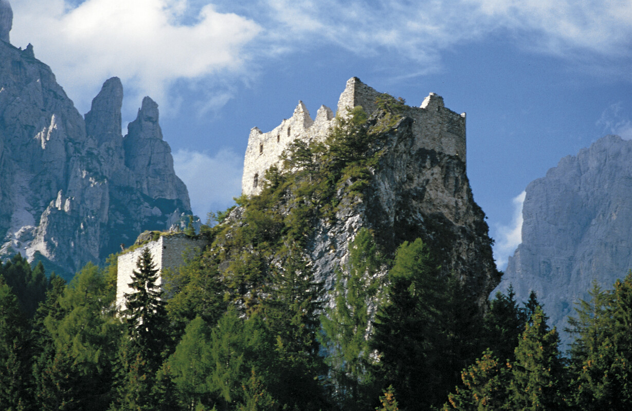 Ogni sera la cima Canali si trasforma in una parete frastagliata di colore grigio con striature rosso-ruggine, sovrastata dalle suggestive rovine del Castel Pietra. La rocca, risalente al XIII secolo, è stata teatro di guerre, rivolte e assedi.