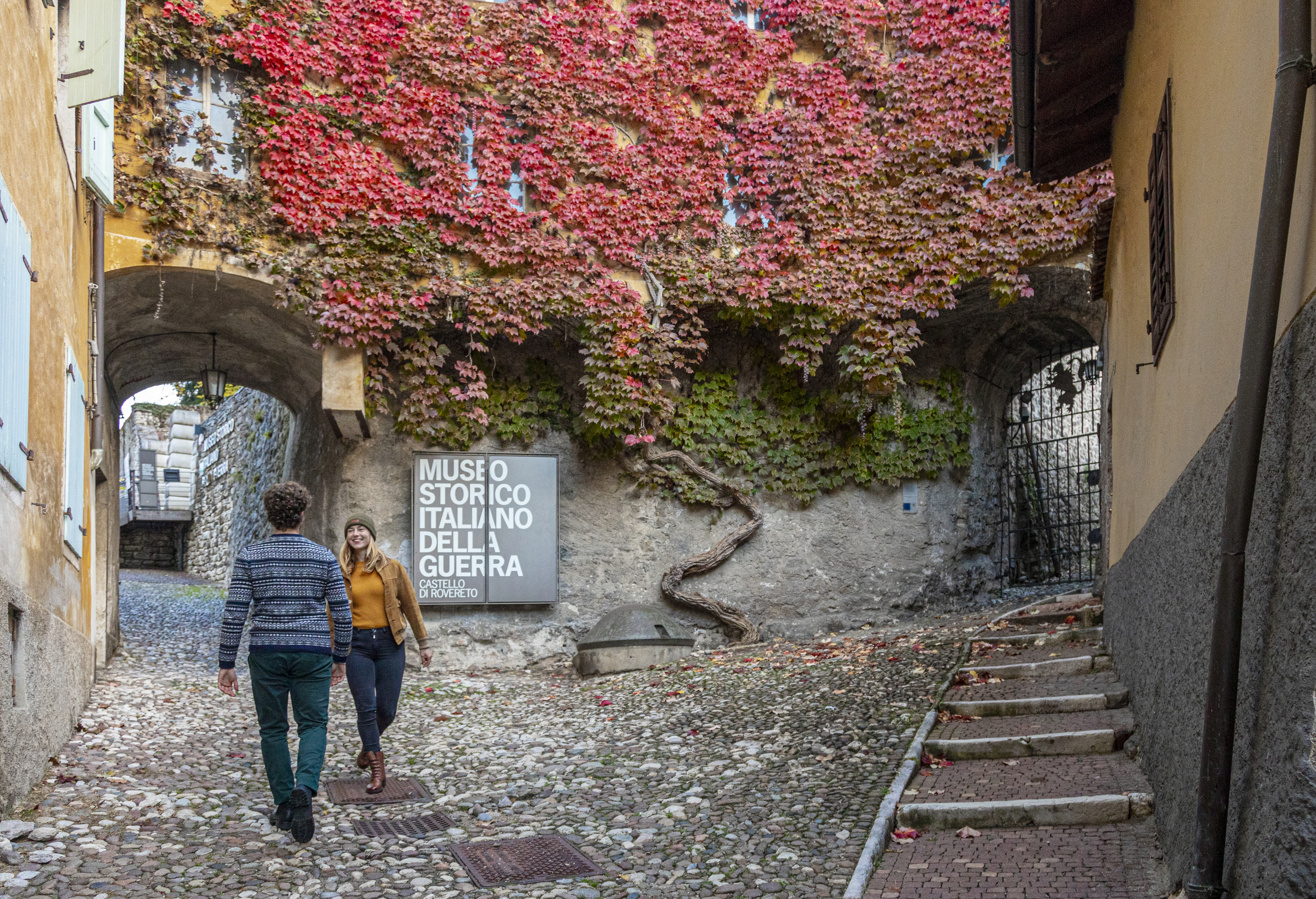 Con una passeggiata di poco più di mille metri dalla Piazza del MART fino al quartiere di Santa Maria, si possono ammirare una moltitudine di ‘meraviglie’ che rendono il percorso uno dei più belli del Trentino dal punto di vista storico-artistico. Un itinerario attraverso sette secoli di storia ed epoche diverse che offre un “assaggio” della città, da approfondire individualmente secondo i propri interessi. Dal MART si percorre Corso Bettini per raggiungere Piazza Rosmini con il Palazzo Del Ben, la grande fontana e Corso Rosmini, boulevard della città. Appena lasciato il MART, nel settecentesco Palazzo Alberti Poja in Corso Bettini, è visitabile lo Spazio Fausto Melotti, dedicato ad uno dei più celebri artisti italiani del Novecento, nato a Rovereto nel 1901. La selezione di opere in mostra comprende disegni, sculture, ceramiche, installazioni polimateriche realizzate tra il 1930 e il 1980, provenienti dalla Collezioni del MART. Bastano pochi minuti a piedi per raggiungere il centro storico: da Piazza Rosmini a Piazza Battisti, fino a Piazza del Podestà, si cammina tra vicoli e stretti campielli dove si affacciano numerose le botteghe storiche, si aprono le piazze. E alzando lo sguardo si riconoscono le commistioni architettoniche e le influenze veneziane sulle facciate di chiese e palazzi, eredità del secolo di appartenenza della città alla Serenissima. Dalla via Rialto si raggiunge la Porta di San Marco e l’omonima chiesa barocca - dove un giovanissimo Mozart nel 1769 tenne il suo primo concerto pubblico in Italia: Si prosegue lungo via della Terra fino alla Casa d'Arte Futurista Depero, unico museo al mondo fondato da un artista futurista. Sulla sinistra si innalzano i bastioni del Castello di Rovereto, uno nei migliori esempi di fortificazione alpina di epoca tardomedievale. Il castello è sede del Museo Storico Italiano della Guerra, che conserva memorie, oggetti, fotografie, documenti, uniformi e materiali relativi alla Prima guerra mondiale. A Palazzo Pretorio, invece, si apprezzano le decorazioni delle sue facciate. Si attraversa quindi il Ponte Forbato, sul torrente Leno, e si accede al quartiere di S. Maria dove termina il “chilometro”. Percorrendo la ciclabile sul Lungoleno verso ovest si raggiunge il quartiere di Borgosacco, dove si respira l’innovazione e il futuro negli edifici della storica Manifattura Tabacchi, riconvertita a incubatore di start up e integrata da “Be Factory”, 25 mila metri quadrati di moduli produttivi di legno e vetro, disegnati dall’archistar giapponese Kengo Kuma.