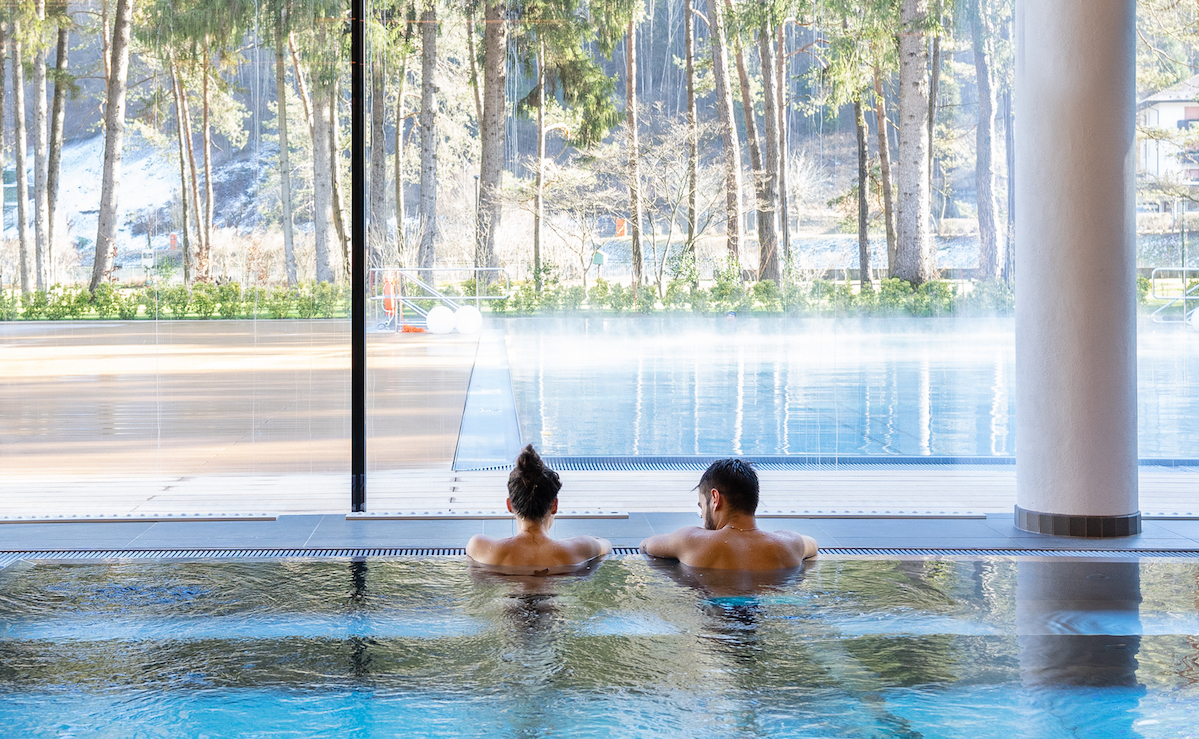 Una giornata da dedicare a fare il pieno di energia e poi rilassarsi nell’acqua termale Alloch. Tour in E-bike alla scoperta di strade forestali e panoramici sentieri; al rientro un adrenalinico match a padel nel nuovissimo campo a 200 mt dalle terme per poi rigenerarsi con le proprietà antinfiammatorie dell’acqua termale Alloch in Grotta termale con cascata e cascatelle che rilassano la muscolatura della cervicale. Per poi abbandonarsi al calore rigenerante nella sauna e nella doccia termale con vista sul maestoso Gruppo del Catinaccio, magnifici tramonti rosa, alternando una pedalata con l’idrobike alla stimolante effervescenza delle bolle d’acqua. Infine, lasciandosi coccolare dalle mani esperte degli operatori con un massaggio all’arnica, assaporando un drink termale per fare il pieno dei Sali minerali. Il tutto ad euro 150,00.