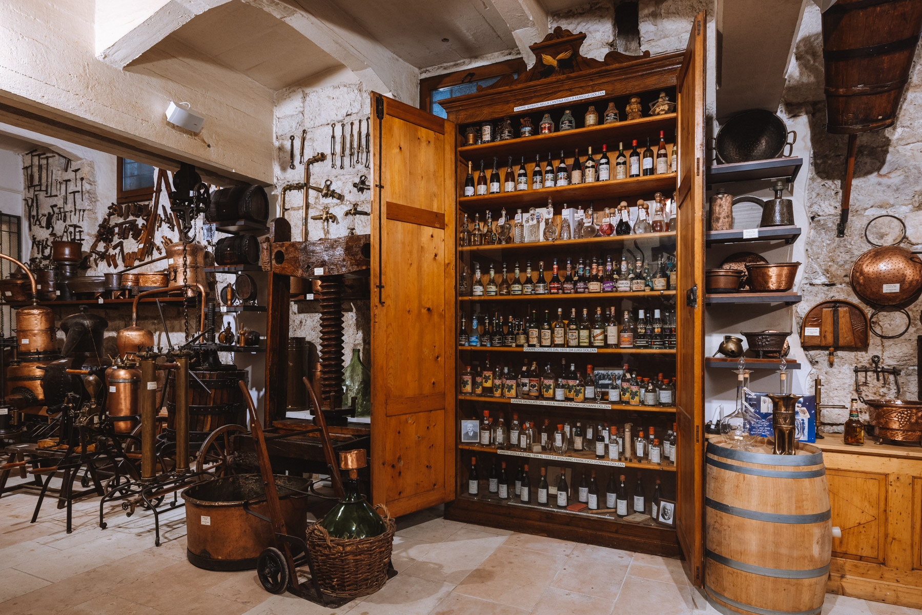 Non c’è solo il vino al centro di queste esperienze, il Trentino è infatti la patria storica della grappa, tanto che qui è nato il “metodo Zadra”, un sistema di produzione oggi utilizzato dalla quasi totalità delle distillerie italiane. A Villa de Varda a Mezzolombardo, dal lunedì al sabato dalle 9 alle 17, si può partecipare ad una visita della distilleria della famiglia Dolzan, distillatori da sei generazioni, dove il visitatore potrà approfondire le sue conoscenze sul tema. L’uva, la virtuosa materia prima che dona i suoi profumi al vino, qui si evolve nella tradizionale essenza chiamata “grappa”, che racchiude il carattere del territorio da cui proviene. La visita prevede un percorso suddiviso in quattro momenti: la storia della famiglia dal passato al presente; la distilleria e la spiegazione del metodo “de Varda”; il processo di invecchiamento e infine il museo "Cose di Casa". Al termine una degustazione di cinque tipologie di grappa in abbinamento a prodotti gastronomici di stagione. www.villadevarda.com