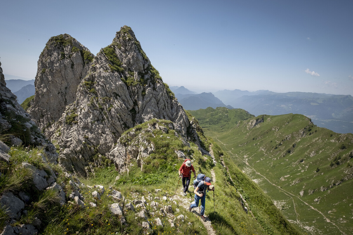 Quinta tappa. Dalla cima dello Zugna una selvaggia dorsale che sembra infinita, ricca di grandi panorami, si allunga in direzione sud est fino alle Piccole Dolomiti e il Gruppo del Carega, toccando Passo Buole, “Termopili d’Italia”, per le battaglie che nel 1916 fermarono i tentativi di sfondare la prima linea italiana. La meta è il rifugio Fraccaroli ai piedi di Cima Carega al confine con la Lessinia orientale.