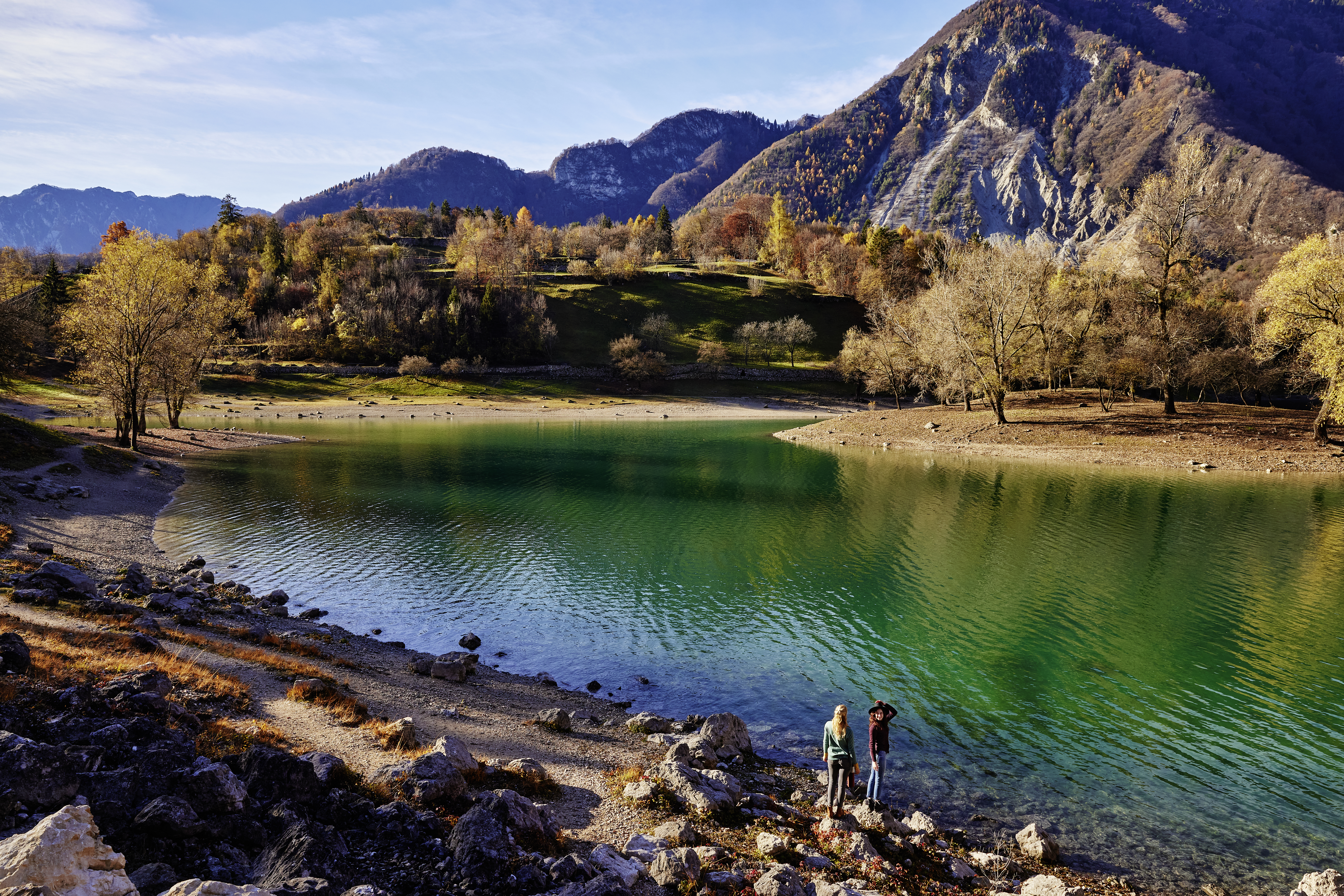 Le faggete che circondano il Lago di Tenno in autunno sono un autentico piacere per gli occhi, come le acque di questo lago che virano dal turchese al verde smeraldo con il mutare delle luci e delle stagioni. Siamo a 570 metri sul livello del mare e prossimi al borgo medievale di Canale di Tenno, uno dei borghi più belli d’Italia. Si può raggiungere con una passeggiata che ha inizio dal parcheggio presso il lago e seguendo il sentiero a sinistra, che percorre tutto il perimetro del lago. Arrivati in prossimità dell'isolotto, si sale verso il chiosco per raggiungere una strada sterrata seguendo le indicazioni per Canale fino ad arrivare al borgo. Locale consigliato: Agritur Calvola (www.agriturcalvola.it)