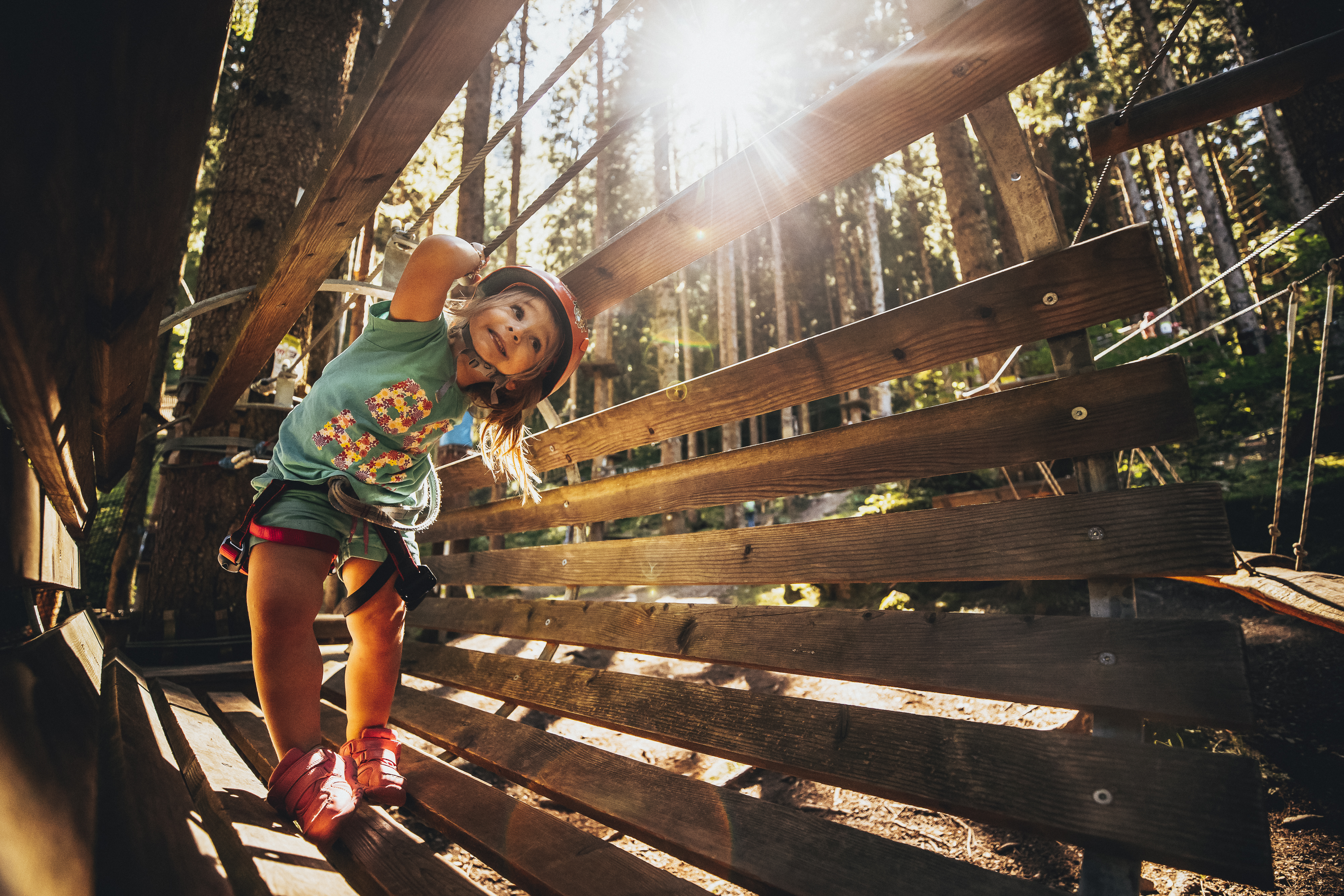 Per provare l’adrenalina di attraversare un ponte sospeso ci sono in Trentino ben tre possibilità, e in tutti i casi si tratta di passerelle tra i boschi, sospese a mezz’aria su cascate e torrenti. Si cammina su una pedana, in legno o in metallo, tenendosi a corrimano laterali molto alti per garantire una maggiore sicurezza. Di fatto, questa esperienza non presenta particolari difficoltà tecniche, il che la rende accessibile anche ai più giovani.