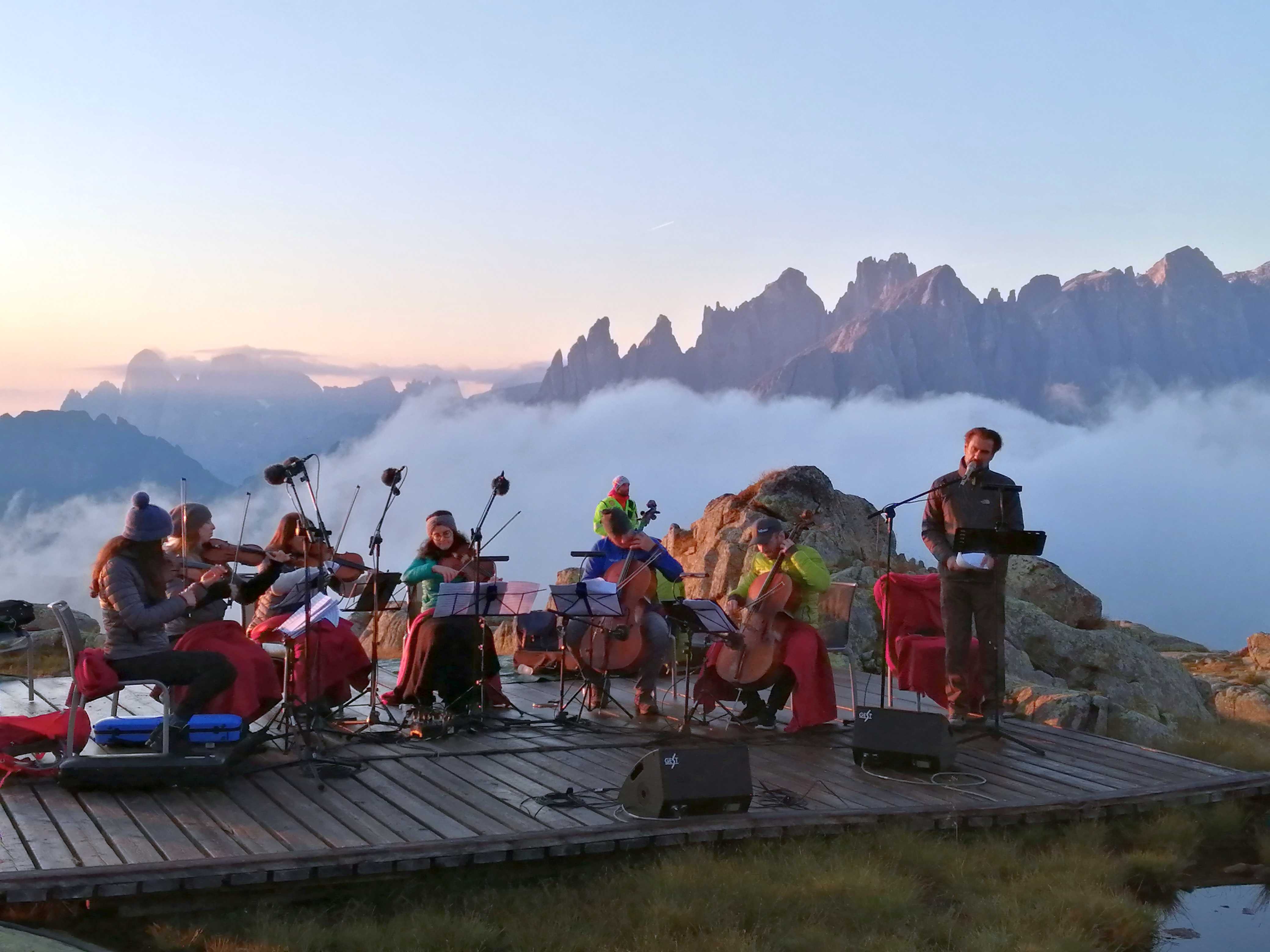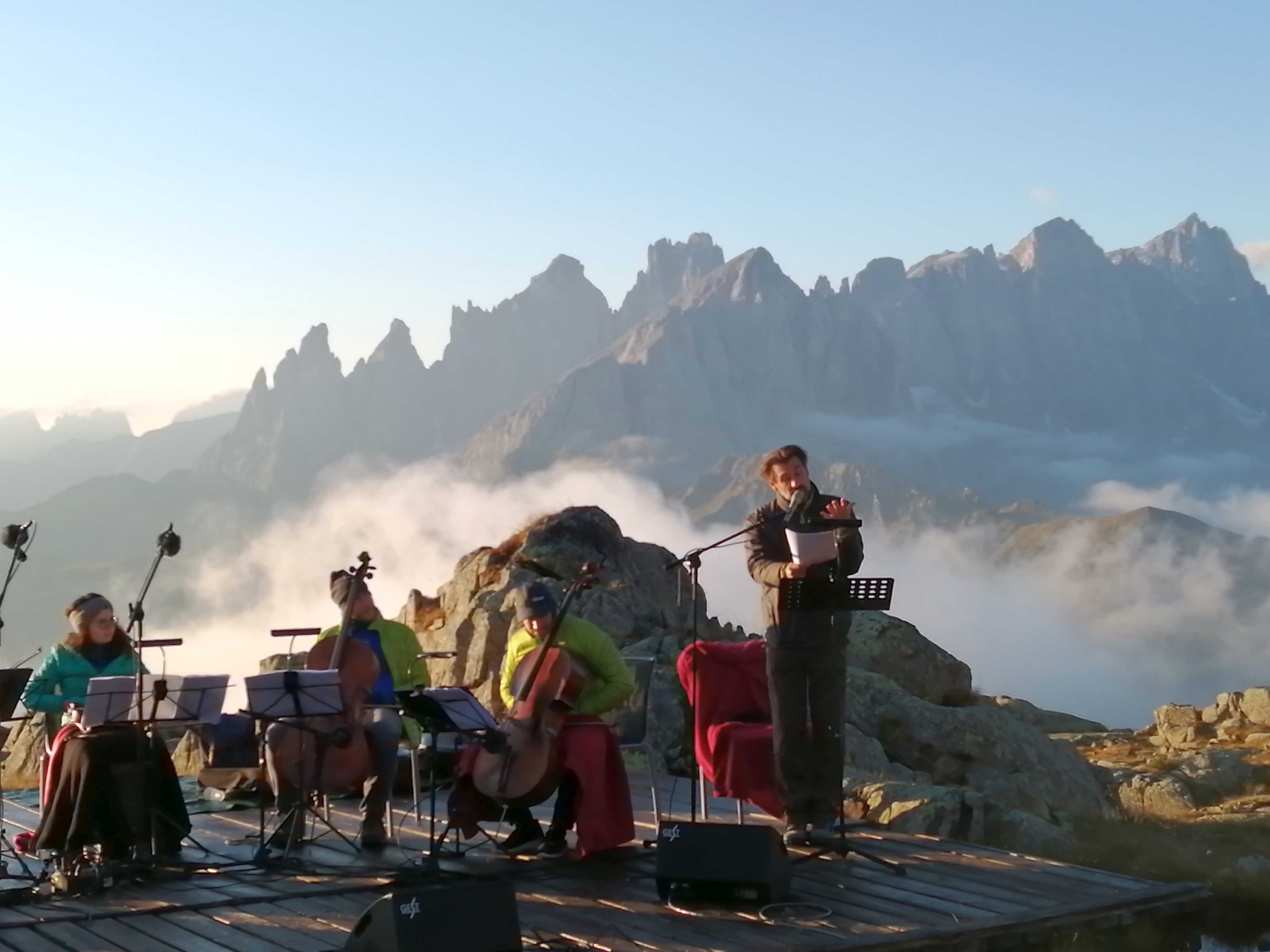 Nel segno di Ludwig Van Beethoven, un sorgere del sole carico di suggestioni, dalla musica al racconto, ha avuto come protagonisti il Quartetto Lyskamm, Sara Marzadori e Paolo Bonomini (violoncello), e l’attore Fabrizio Gifuni. Mercoledì 8 settembre il cantautore Daniele Silvestri al Bait del Germano in Paganella