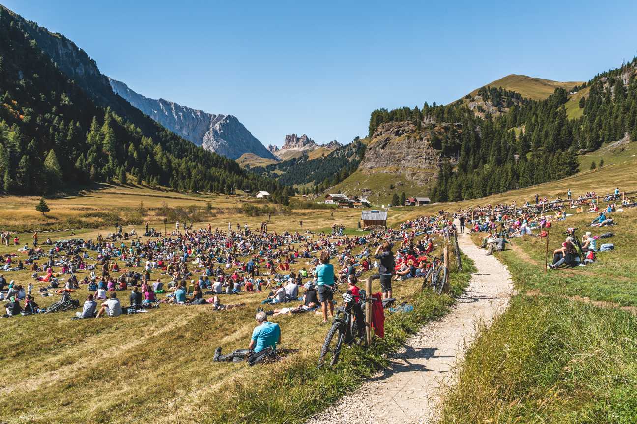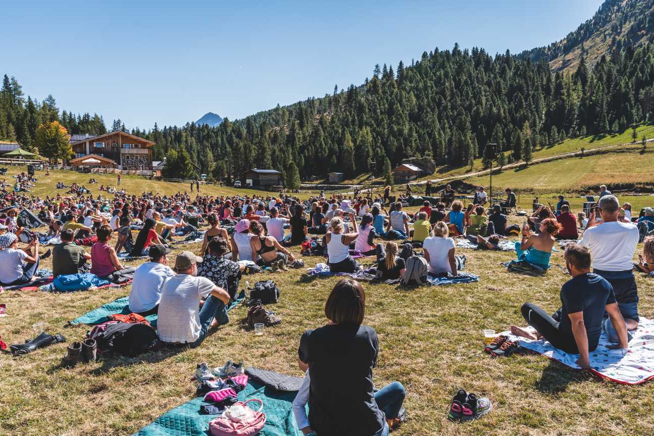 Oggi in Val Duròn sui prati attorno al rifugio Micheluzzi. Nell’ultimo appuntamento de I Suoni delle Dolomiti un pubblico numeroso ha salutato l’esibizione del cantautore romano in un crescendo di emozioni e ritmo