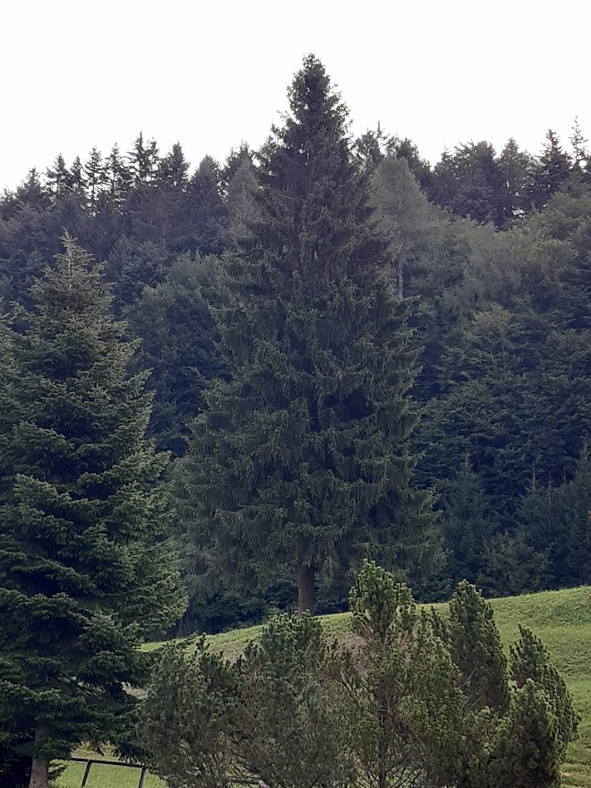 L’abete rosso, con un’altezza di 28 metri, dalla folta chioma sviluppata grazie alla notevole esposizione al sole, è cresciuto ai piedi delle Dolomiti di Brenta, che dominano l’altopiano della Paganella. Ai suoi piedi, un alberello di poco più di un metro, cresciuto sotto la protezione del maggiore è già pronto a prendere il suo posto.