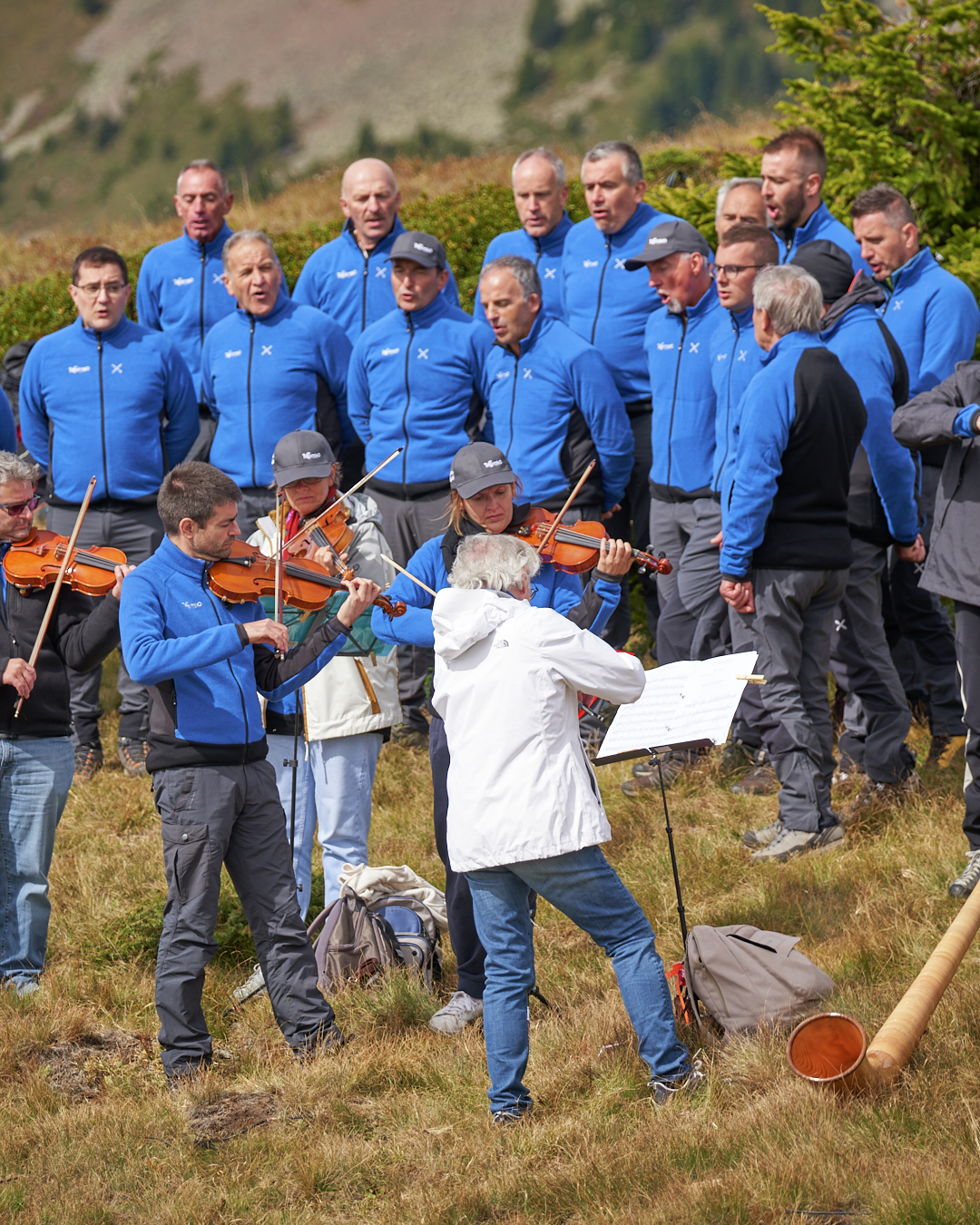 Il penultimo appuntamento dei Suoni delle Dolomiti ha proposto un dialogo di note tra il Coro Sasso Rosso della Val di Sole, l'ensemble de I Virtuosi italiani e il musicista di corno alpino Carlo Torlontano