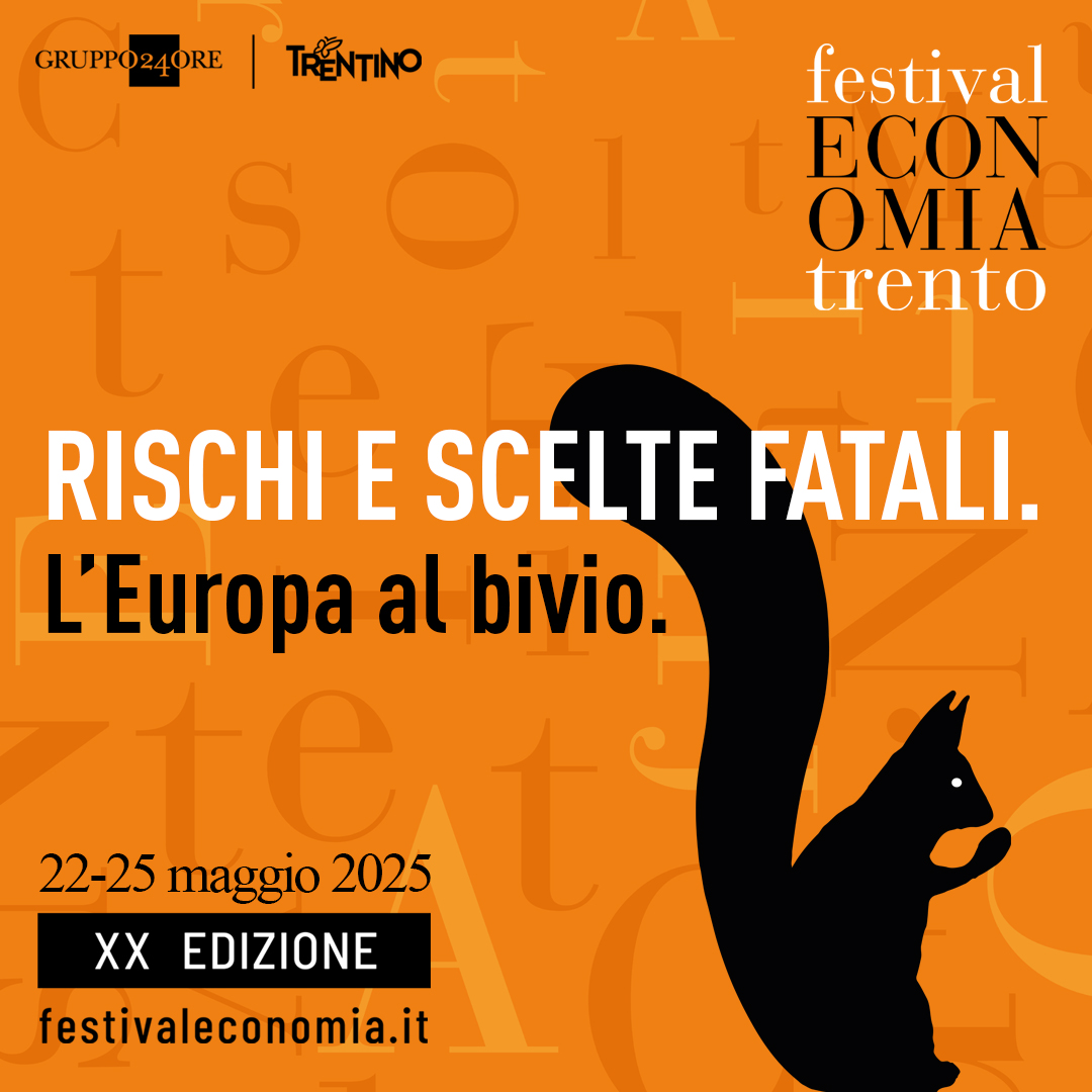 Milano, 18 novembre – È “Rischi e scelte fatali. L’Europa al bivio” il titolo individuato dall’Advisory Board per la 20° edizione del Festival dell’Economia di Trento, in programma dal 22 al 25 maggio 2025, organizzata per il quarto anno consecutivo dal Gruppo 24 ORE e Trentino Marketing per conto della Provincia Autonoma di Trento e con la collaborazione del Comune e dell’Università di Trento.
