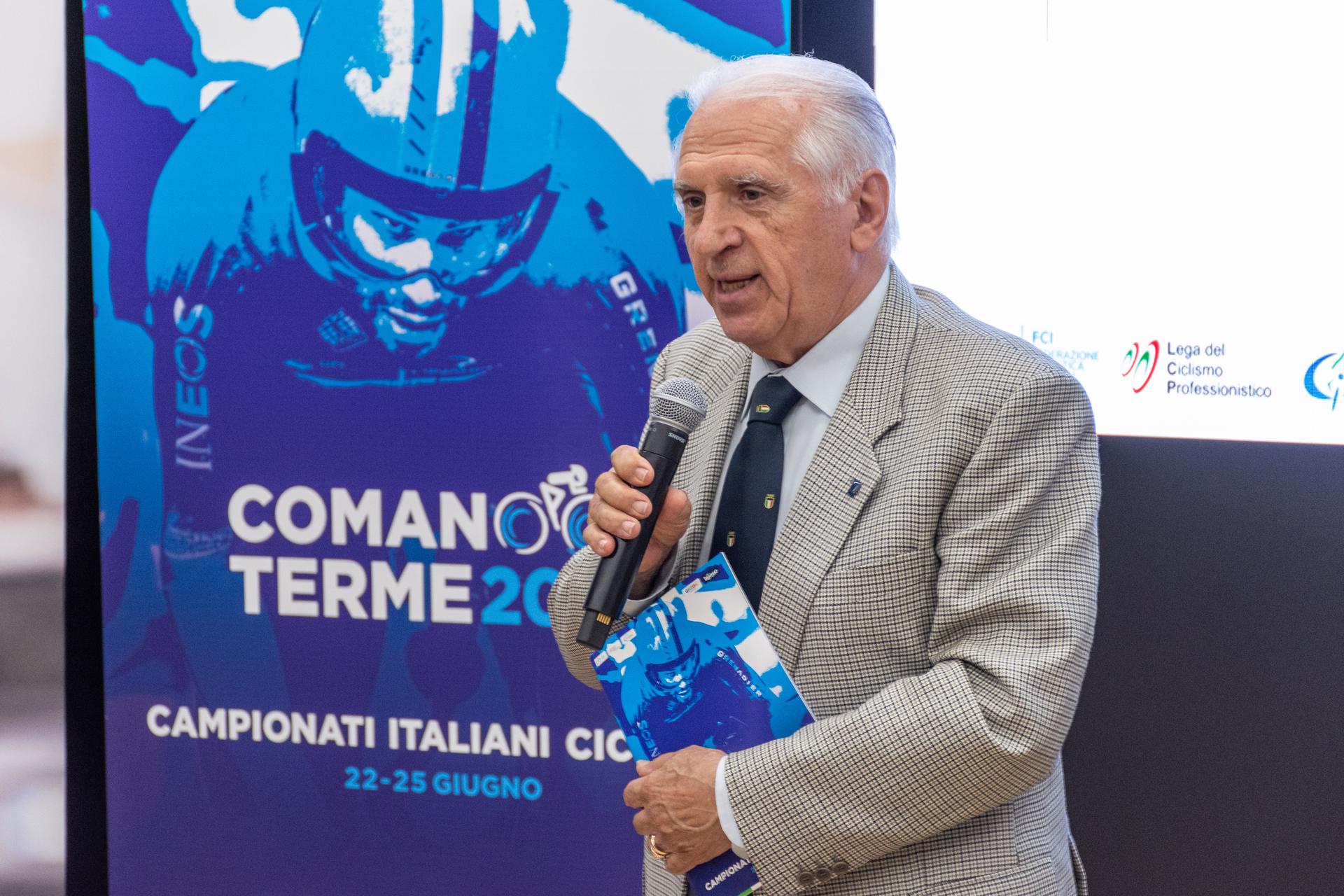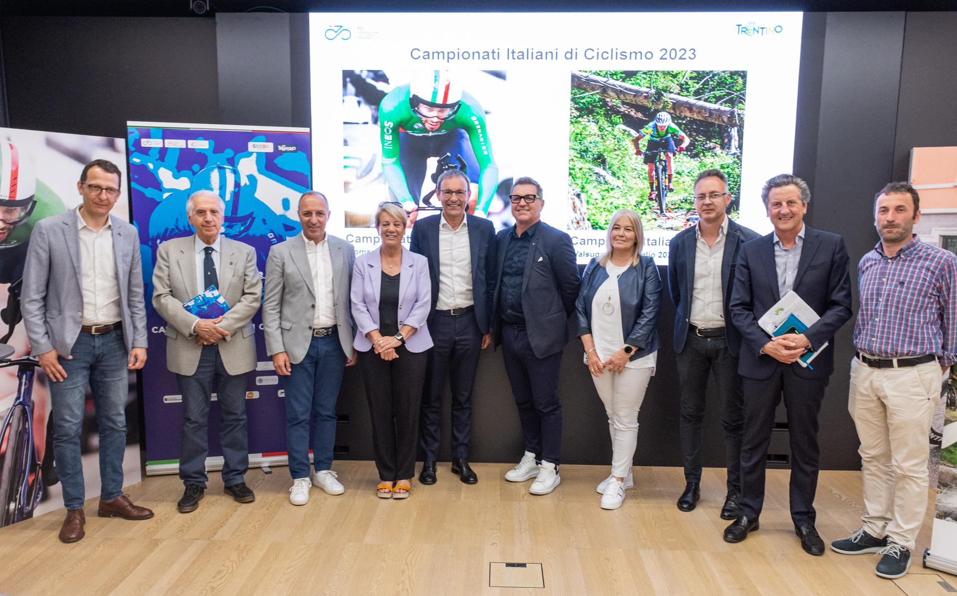 Alla presentazione, condivisa con l'altro Campionato Italiano organizzato in Trentino, quello di MTB Marathon in programma il 29 luglio a Telve, in Valsugana, hanno preso parte, tra gli altri, l'Assessore al Turismo e allo Sport della Provincia Autonoma di Trento Roberto Failoni, il Presidente e il CEO di Trentino Marketing, rispettivamente Gianni Battaiola e Maurizio Rossini, il Presidente di APT Garda Dolomiti Silvio Rigatti, il Presidente della Federazione Ciclistica Italiana Cordiano Dagnoni, la Presidente di CONI Trento Paola Mora, la Presidente di FCI Trento Giovannina Collanega, il Sindaco del Comune di Bleggio Superiore Flavio Riccadonna, il Direttore delle Terme di Comano Alessandro Bazzanella, il Direttore di APT Valsugana Stefano Ravelli, il Sindaco del Comune di Telve Matteo Degaudenz, oltre ai leader dei comitati organizzatori, il Presidente del GS Alto Garda Giacomo Santini e il General Manager Maurizio Evangelista per i Campionati Italiani su strada di Comano Terme ed Enrico D'Aquilio per i Campionati Italiani di MTB Marathon in Valsugana.
