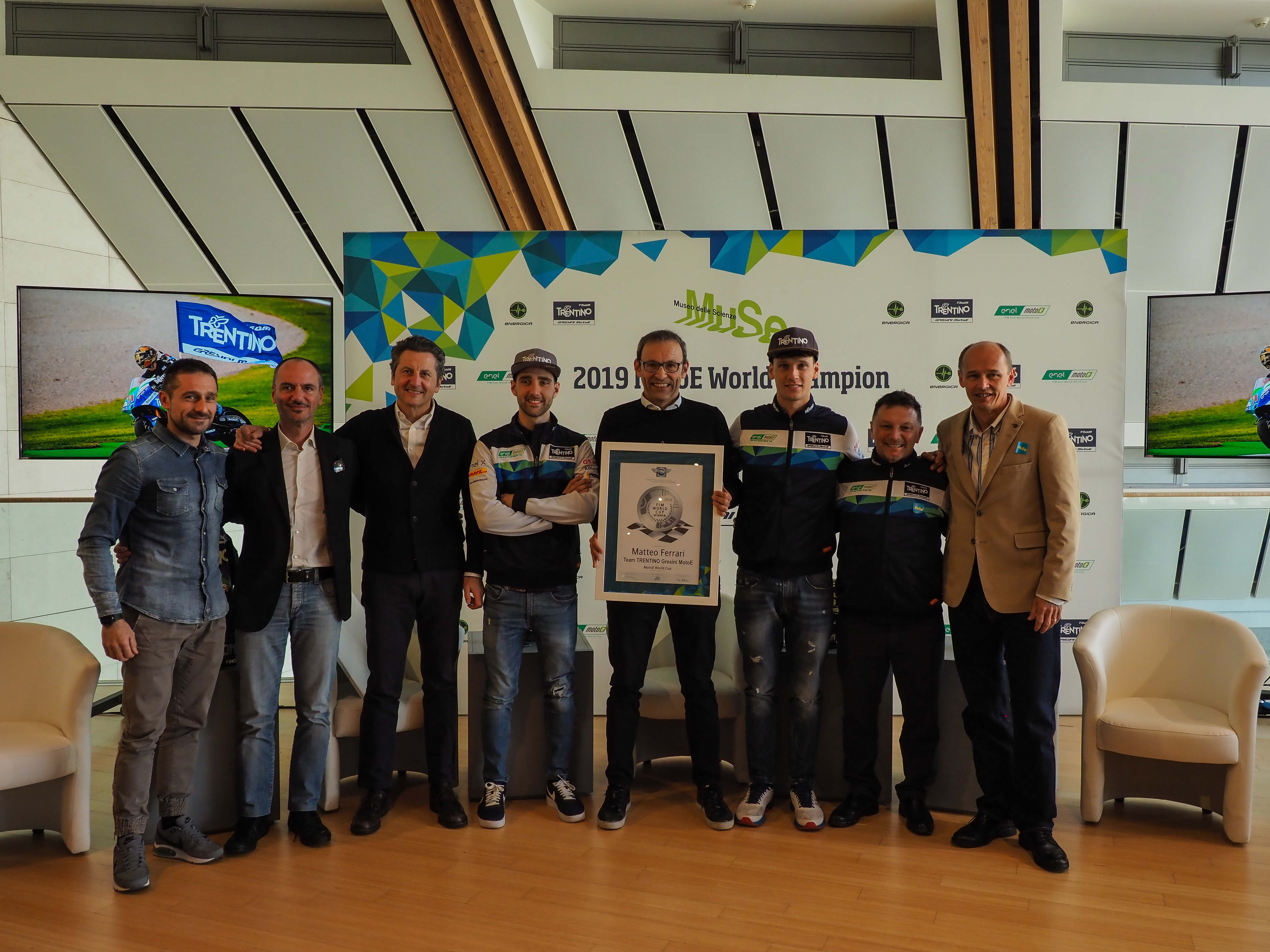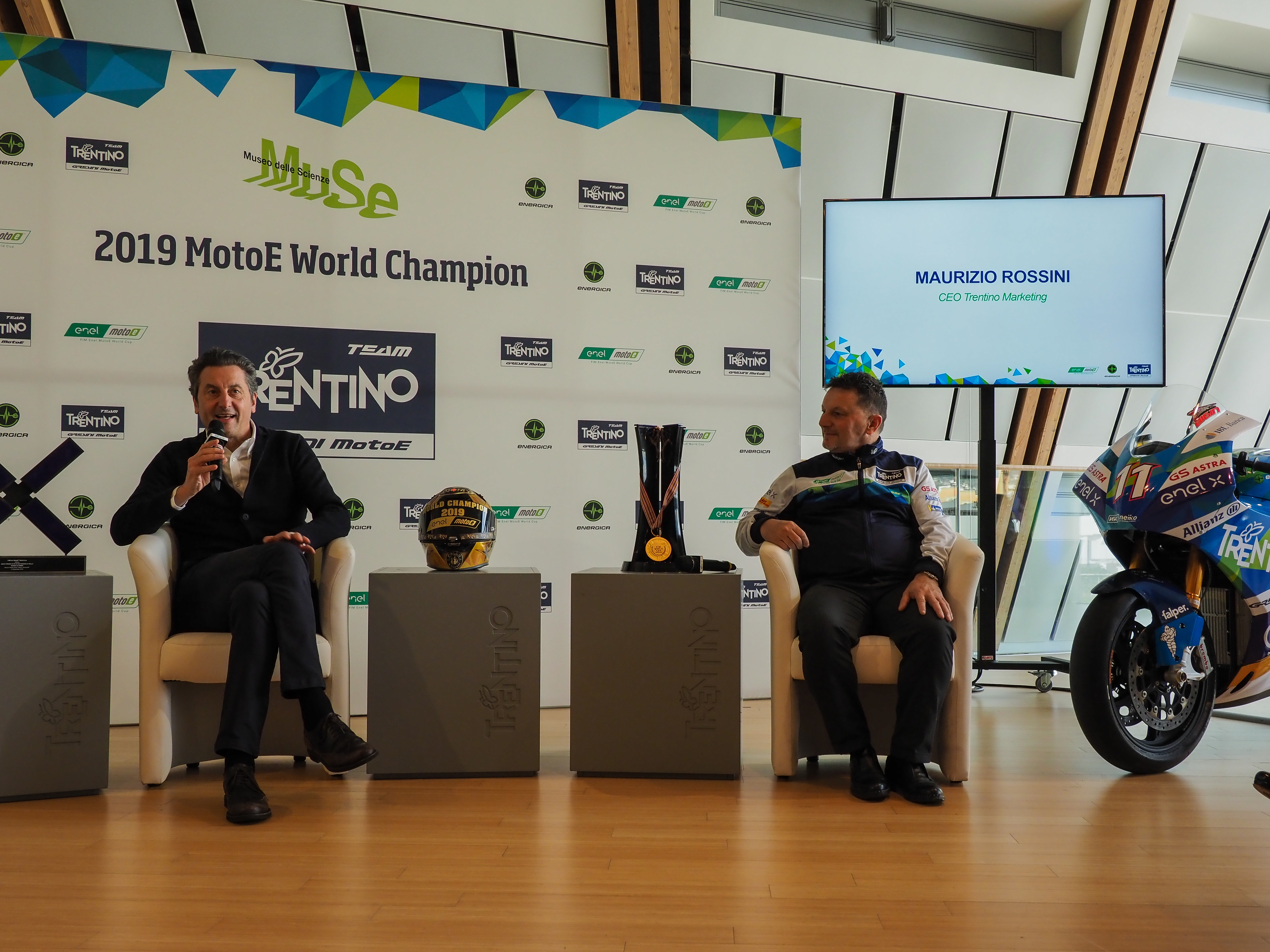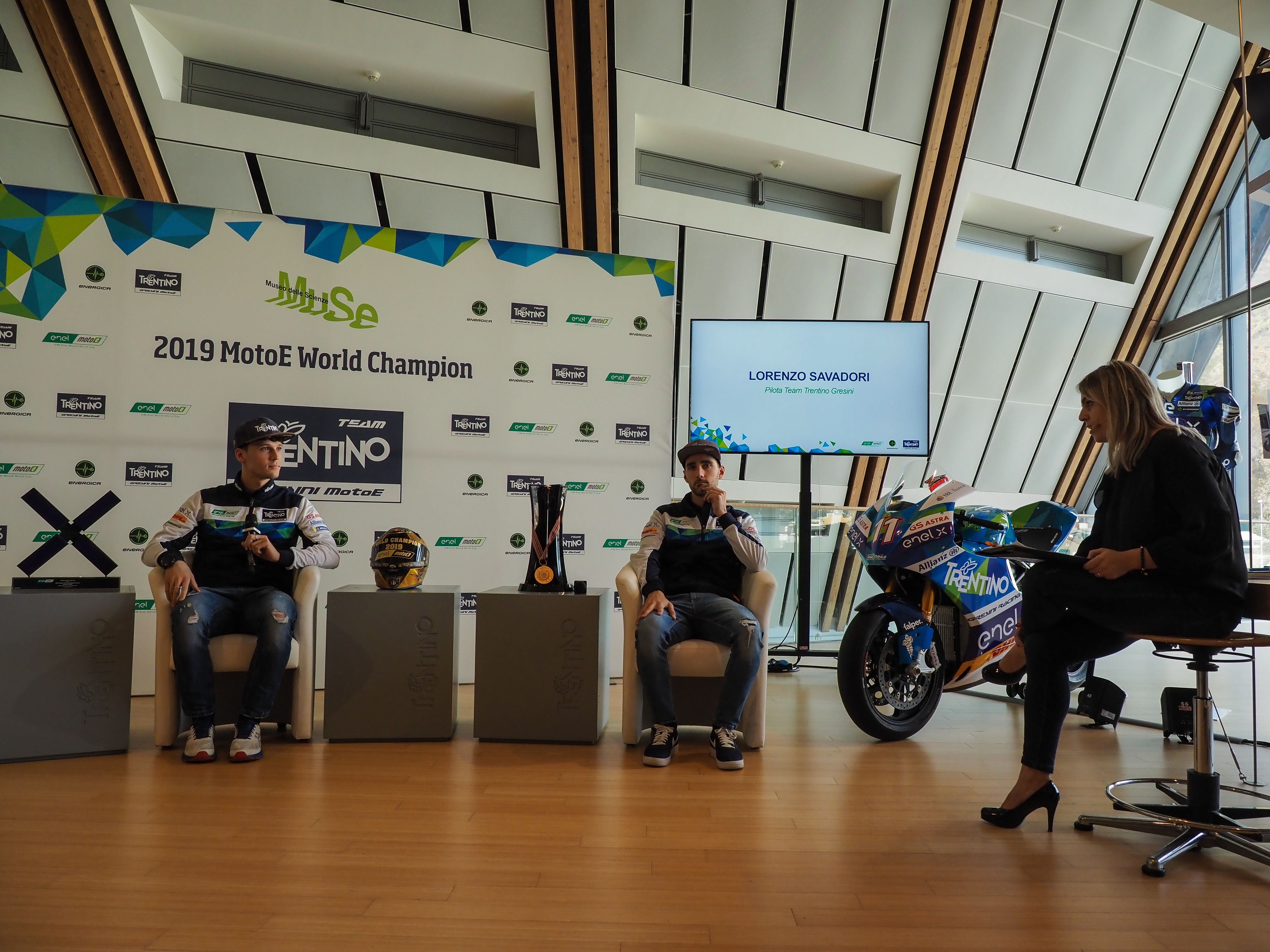 L’annuncio del rinnovo della partnership è stato comunicato oggi nell’incontro al Muse organizzato da Trentino Marketing e Team Gresini al quale sono intervenuti l’Assessore provinciale allo sport e al turismo Roberto Failoni, Maurizio Rossini CEO di Trentino Marketing, il Team manager Fausto Gresini con i piloti Ferrari e Savatori e l’intero staff. Presenti all’incontro anche Nicolas Goubert, Direttore esecutivo della MotoE, Giacomo Leone Direttore di Energica, l’azienda che fornisce le moto elettriche ai team, Alessandro Brannetti pilota tester di Energica e il commentatore delle gare di MotoE, il giornalista di Sky Sport Sandro Donato Grosso.