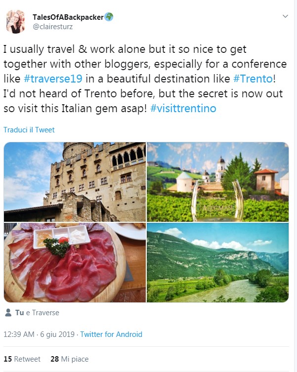 «Possiamo tranquillamente affermare”, dice Maurizio Rossini CEO di Trentino Marketing, “che in questi giorni c’è un racconto del Trentino e di tutte le sue maggiori attrattive che sta scorrendo sotto gli occhi dell’intero pianeta, grazie alle esperienze riportate da centinaia di blogger e influencer che sono riuniti a Trento per questo evento e che solo nei primi due giorni hanno già prodotto un numero davvero enorme, oltre 10 milioni di impressions e 7 milioni di reach, ovvero il numero di volte che i contenuti dedicati al nostro territorio sono stati visualizzati da fan e follower sui principali canali social».