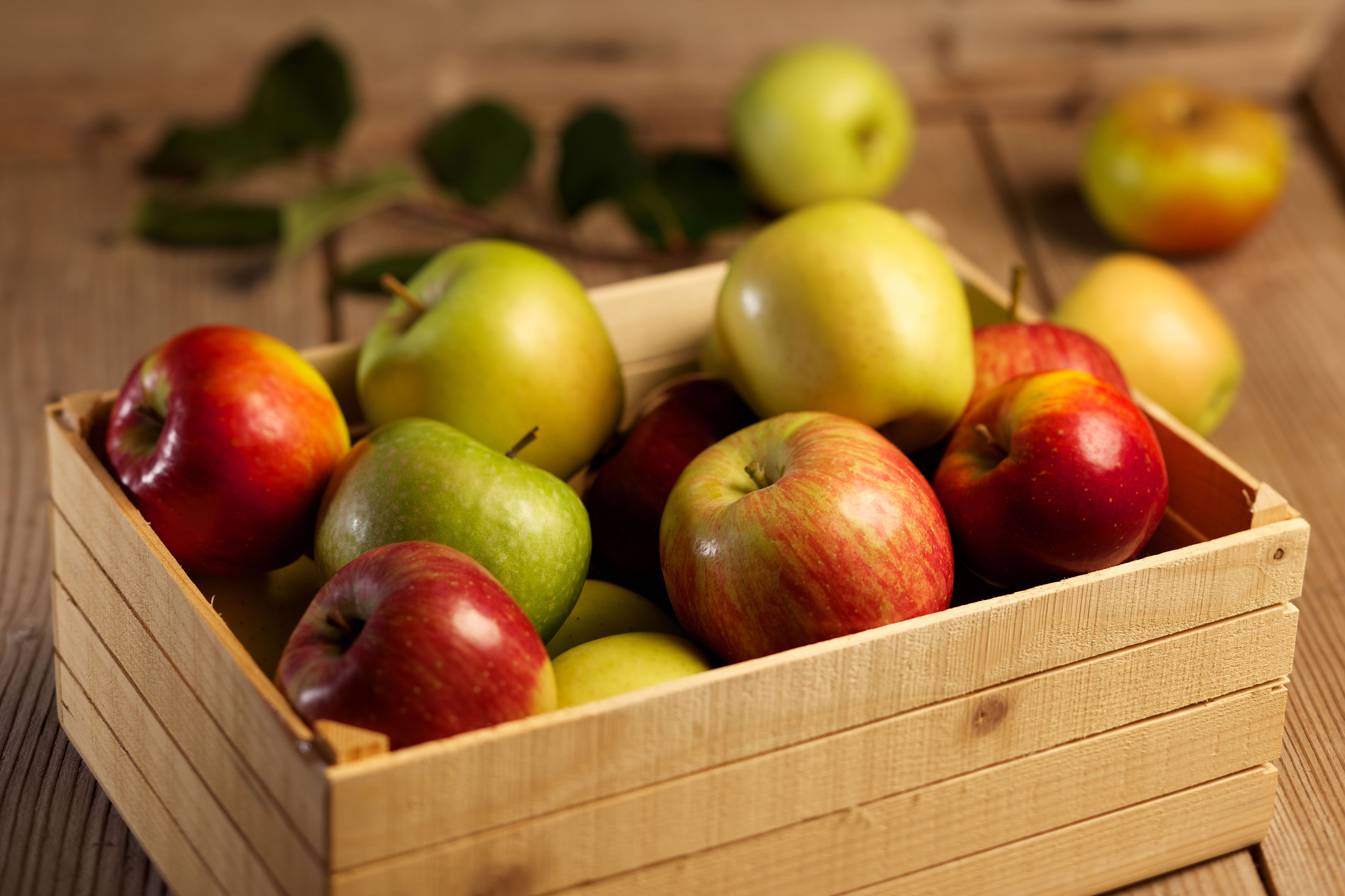 Gustose, succose, sane e nutrienti, le mele trentine, coltivate in gran parte del territorio provinciale, rappresentano il frutto simbolo di questo territorio. Famose, specialmente, sono quelle provenienti dalla Val di Non, dove le condizioni climatiche, l’esposizione del territorio e le caratteristiche del terreno sono gli elementi che hanno conferito sapore, croccantezza e fragranza inconfondibili a questo frutto. In particolare la luminosità di queste valli, con più di duemilacinquecento ore di sole in un anno, regala una maturazione perfetta; la “Mela Val di Non” è stata la prima, e finora unica, mela italiana a ricevere il riconoscimento europeo della DOP. Le varietà coltivate sono tante, ma tre spiccano principalmente: la Renetta Canada, ricca di antiossidanti, buonissima cotta, quella con cui si prepara il famosissimo Strudel; la Red Delicious (la famosa “mela di Biancaneve”), perfetta a fine pasto o sgranocchiata per merenda; e la croccante Golden Delicious, che è la mela per eccellenza, essendo la varietà più coltivata in Europa e la preferita dalle famiglie italiane. Nel registro delle denominazioni di origine dell’Unione Europea è inoltre stata iscritta l’indicazione geografica protetta (IGP) per otto varietà di mele del Trentino: Golden Delicious, Red Delicious, Gala, Fuji, Morgenduft, Renetta, Granny Smith, Pinova. Tutte queste varietà di mele presentano specifici parametri di qualità definiti in dettaglio nel disciplinare. La produzione media annua è di circa 500 mila tonnellate.