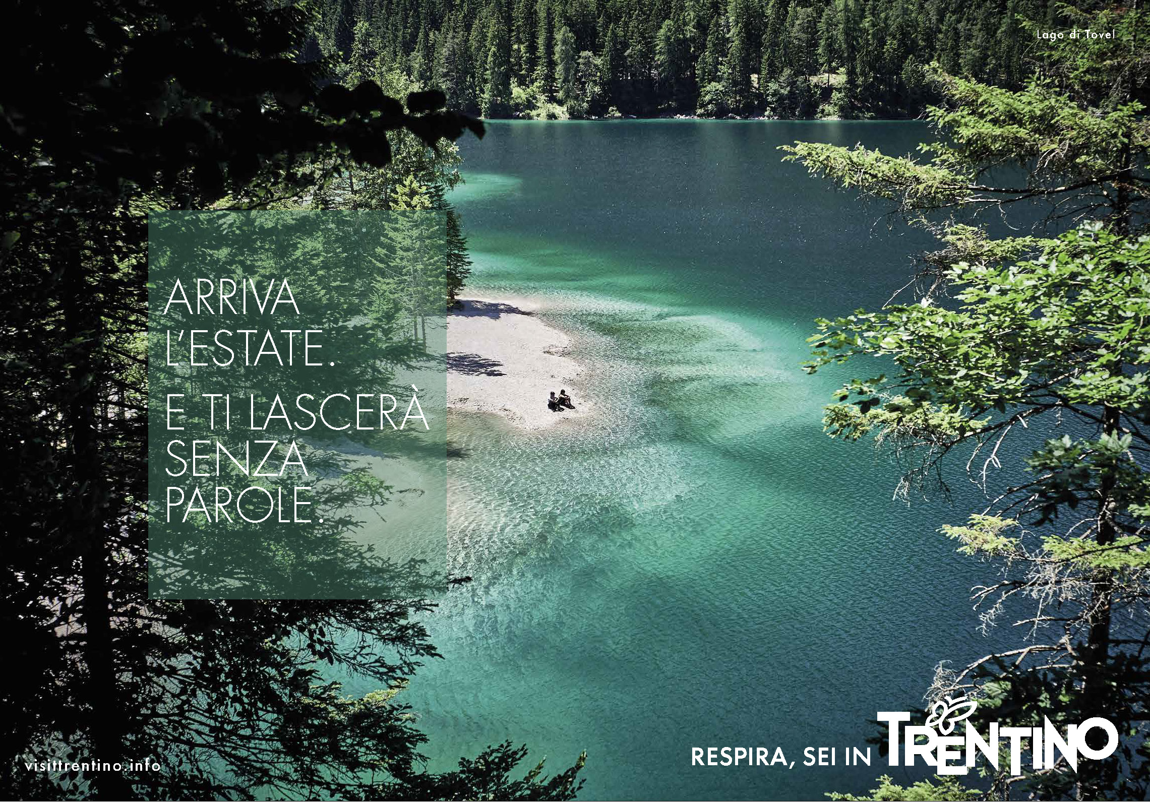 I soggetti della campagna ADV saranno inizialmente incentrati sui suoni della natura e successivamente sulle emozioni e con il claim “Respira, sei in Trentino” a chiudere ogni uscita. Campagna che per la carta stampata prevede 81 uscite su 32 testate dal 15 maggio al 30 luglio e per l’estero in Germania e Austria.