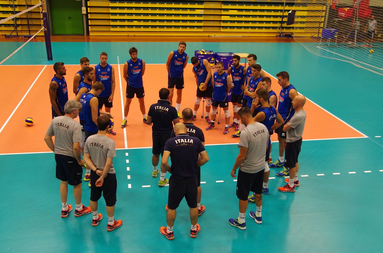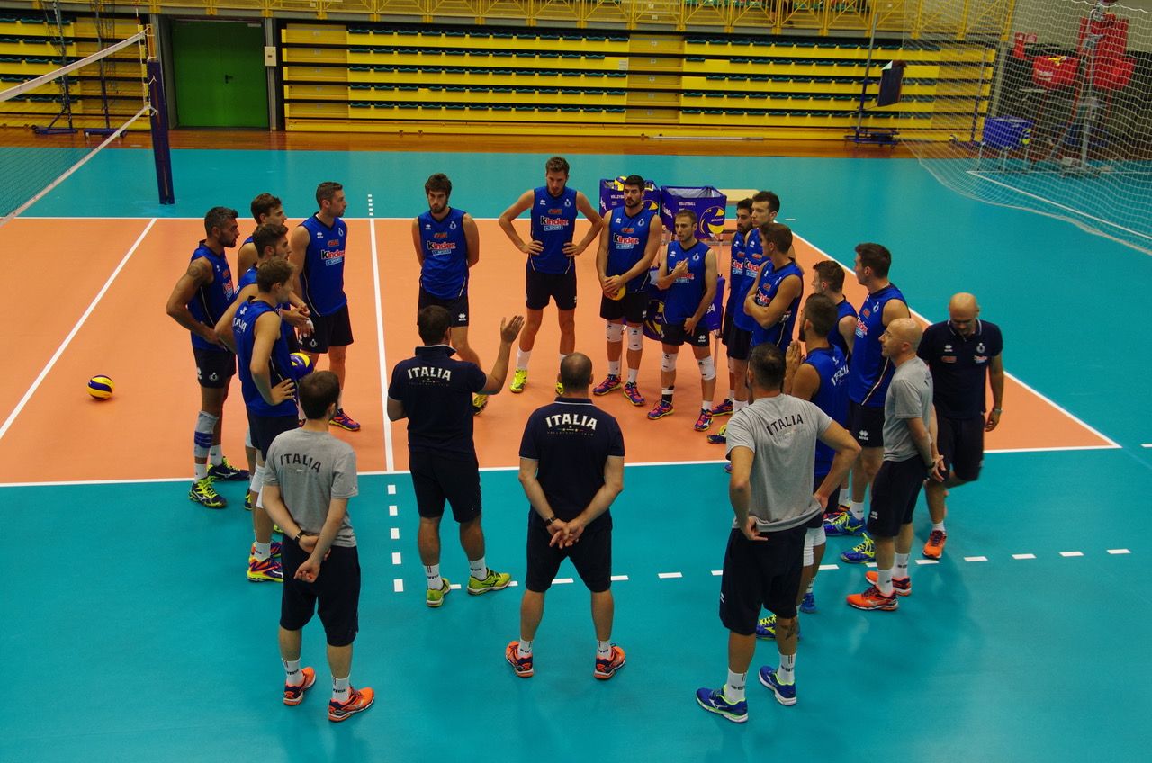 I sedici convocati per questo collegiale sono gli alzatori Simone Giannelli (Diatec Trentino) e Luca Spirito (Bunge Ravenna); gli attaccanti Giulio Sabbi (Exprivia Molfetta), Luca Vettori (Azimut Modena), Ivan Zaytsev (Sir Safety Conad Perugia), Oleg Antonov (Diatec Trentino), Filippo Lanza (Diatec Trentino), Luigi Randazzo (Calzedonia Verona), Iacopo Botto (Gi Group Monza) e Tiziano Mazzone (Diatec Trentino); i centrali Matteo Piano (Azimut Modena), Davide Candellaro (Cucine Lube Civitanova), Fabio Ricci (Bunge Ravenna) e Daniele Mazzone (Diatec Trentino); i liberi Massimo Colaci (Diatec Trentino) e Fabio Balaso (Kioene Padova). Rispetto all'organico utilizzato nel corso della World League sono assenti Simone Buti e Luca Pesaresi a cui il CT ha preferito dare qualche giorno di riposo in più.
