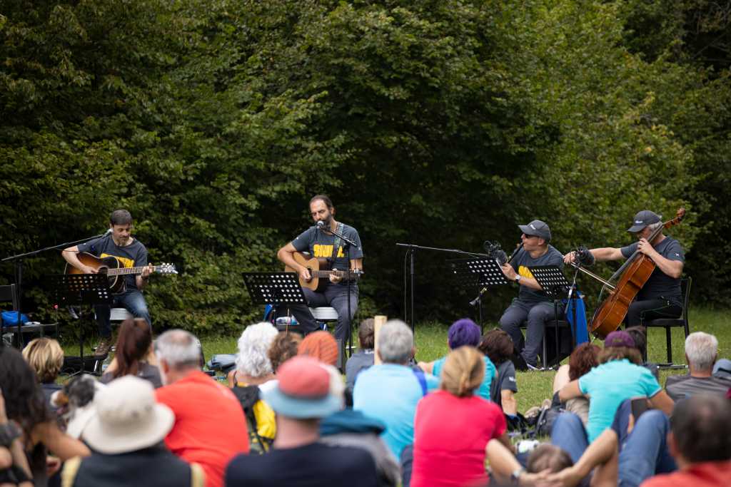 Oggi a Villa Welsperg in Val Canali, a conclusione del Trekking nelle Pale di San Martino, Neri Marcorè, Mario Brunello, Gabriele Mirabassi e Domenico Mariorenzi hanno dato vita ad un viaggio sonoro in quindici tappe, tante quante le canzoni - piccoli gioielli in musica – create da Testa