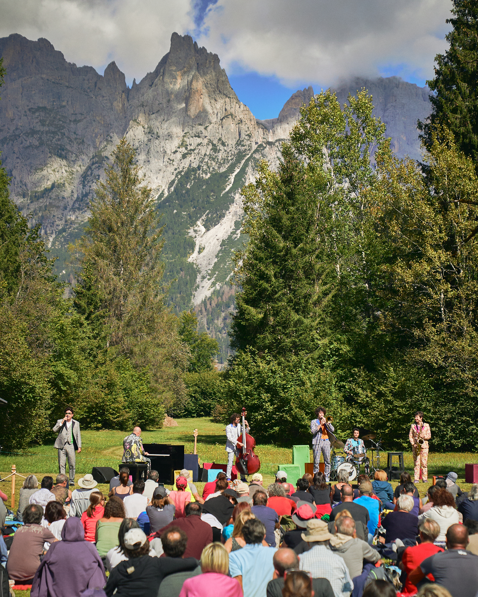 Chissà come racconterebbe Enzo Jannacci il mondo di oggi. Con il suo fare di acuto osservatore della realtà che poi restituiva nei suoi testi memorabili con pennellate di non sense che però un senso eccome se lo avevano. Oggi, su quel palco che sempre emoziona, il prato di Villa Welsperg circondato dalle vette delle Pale di San Martino, con grande umiltà ed onestà, Elio in “Ci vuole orecchio" ha indossato i panni di Jannacci restituendolo in tutta la sua profondità, anche solo per il tempo di uno spettacolo. Per I Suoni delle Dolomiti ha regalato al pubblico un’emozione intensa e non certo “una fastidiosa parentesi fra le chiacchiere nel foyer e la pizza post spettacolo“, come Elio ha tratteggiato il disinnamoramento degli ultimi tempi al Teatro. Davvero numeroso il pubblico accorso in Val Canali, fan di Jannacci, fan di Elio, e chi di entrambi, con cellulari pronti a immortalare il selfie o il video, e la voglia di ballare per un'ora intera. Ed uno ad uno, evocati dal richiamo di Elio al megafono, hanno fatto capolino i ritratti della Milano di Jannacci. Da Saltimbanchi a L’Armando e Silvano, passando per La luna è una lampadina e La banda dell'ortica o Sopra i vetri di una finestra, fino allo slang milanese di El purtava i scarp del tennis, in un intercalare di freddure, Elio ha cucito passato e presente con la sottile ironia della critica. Il tutto impreziosito dagli ottimi musicisti, valore aggiunto per il successo dello spettacolo lungamente applaudito da un pubblico entusiasta a cui Elio non ha negato una foto o un saluto.