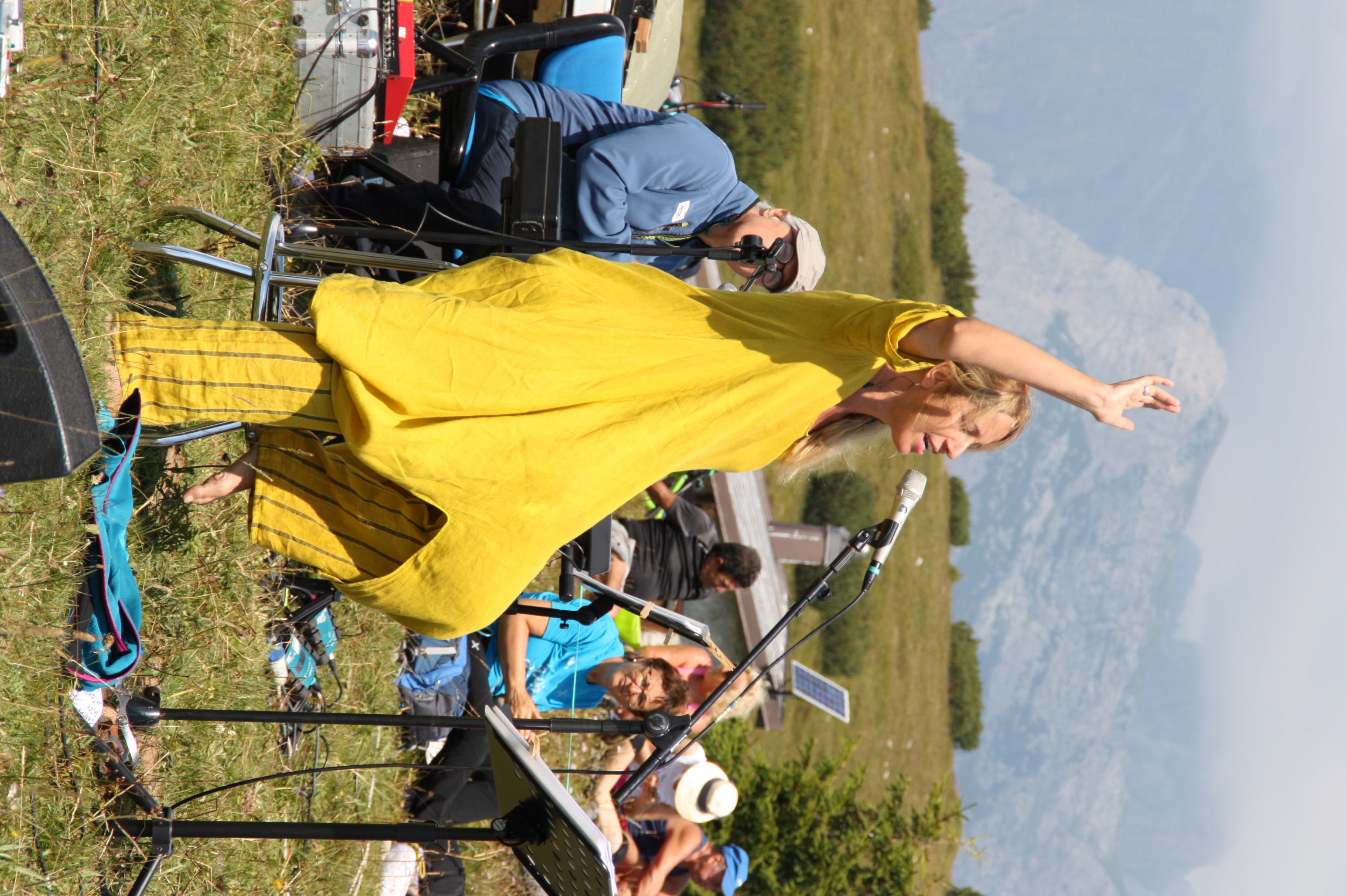 Per raccontare l'intenso concerto che Ginevra Di Marco ha portato - oggi 27 luglio - a I Suoni delle Dolomiti, sull'Altopiano della Paganella, basterebbe l'ultima e partecipatissima canzone: "Solo le pido a Dios", con tutto il pubblico in piedi a battere le mani a ritmo. Un brano dedicato alla giustizia, alla ricerca della pace, al non essere indifferenti al dolore degli altri. Tutt'intorno il panorama del Brenta con le cime velate dalle nubi o la valle dei Laghi che si tuffa nel Lago di Garda, o i verdi pascoli in quota punteggiati dagli abeti che hanno fatto da scenario a una storia in note, quella della vita di Mercedes Sosa, grandissima cantora argentina raccontata attraverso alcune delle sue più importanti canzoni.