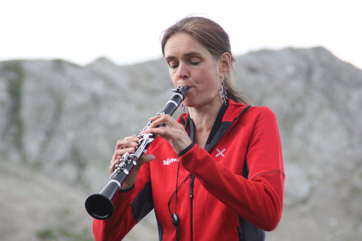 Creazione on stage, ma anche improvvisazione, esecuzione di partiture e soprattutto interazione con il pubblico e il paesaggio circostante: protagonisti dell’esibizione di oggi pomeriggio in Val di Fassa il trombettista tedesco Markus Stockhausen e la virtuosa del clarinetto e del corno di bassetto, l’olandese Tara Bouman