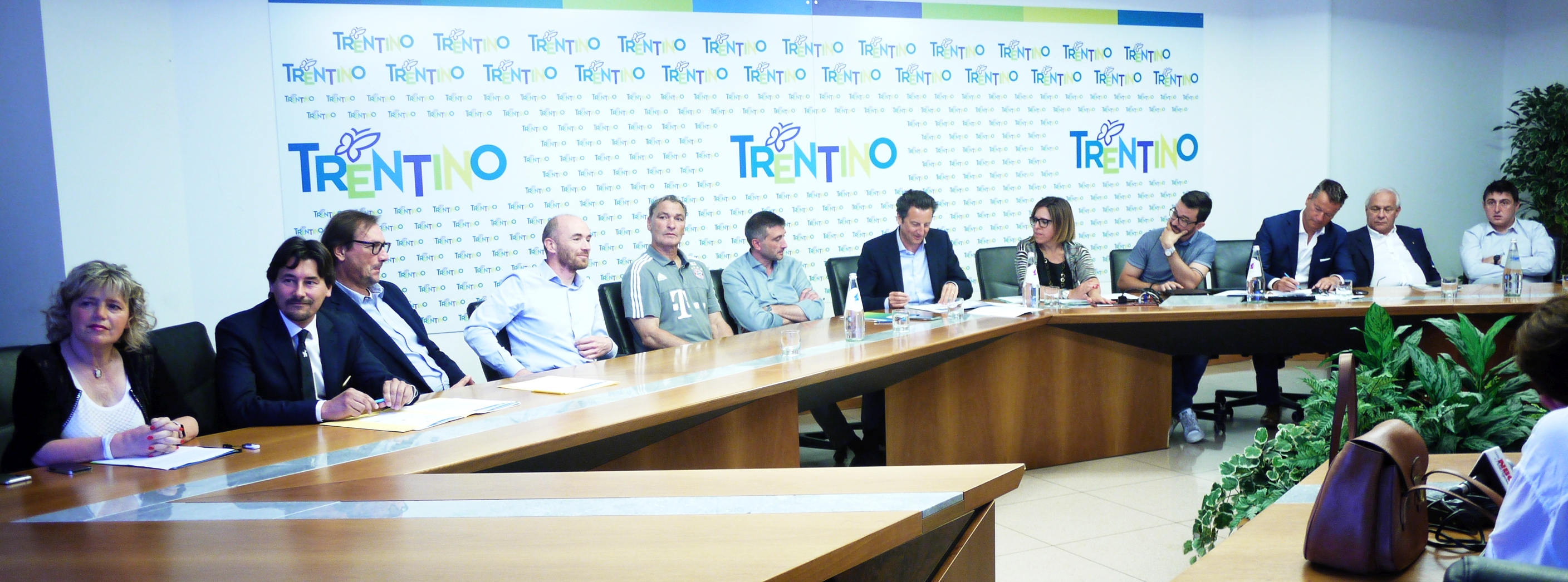 Nel corso della conferenza stampa tenutasi oggi a Trentino Marketing, in una Sala Rombo particolarmente gremita di relatori e media, hanno portato il proprio saluto Maurizio Cereghini, sindaco di Pinzolo, Adriano Alimonta, nuovo presidente dell’Apt Madonna di Campiglio Pinzolo Val Rendena, Andrea Weiss, direttore dell’Apt Val di Fassa, Fabio Sacco, direttore dell’Apt Val di Sole, Romedio Menghini, assessore alle manifestazioni sportive del comune di Dimaro Folgarida e vice presidente dell’Apt Val di Sole, Marco Pacione, team manager del Chievo Verona, Christian Perenzoni, sindaco di Brentonico, Angelo Dalpez, sindaco di Peio, Marco Sorosina, direttore commerciale dell’Hellas Verona, Walter Junghans, preparatore dei portieri dell’under 23 del Bayern Monaco ed Elda Verones, direttore dell’Apt Trento Monte Bondone Valle dei Laghi.