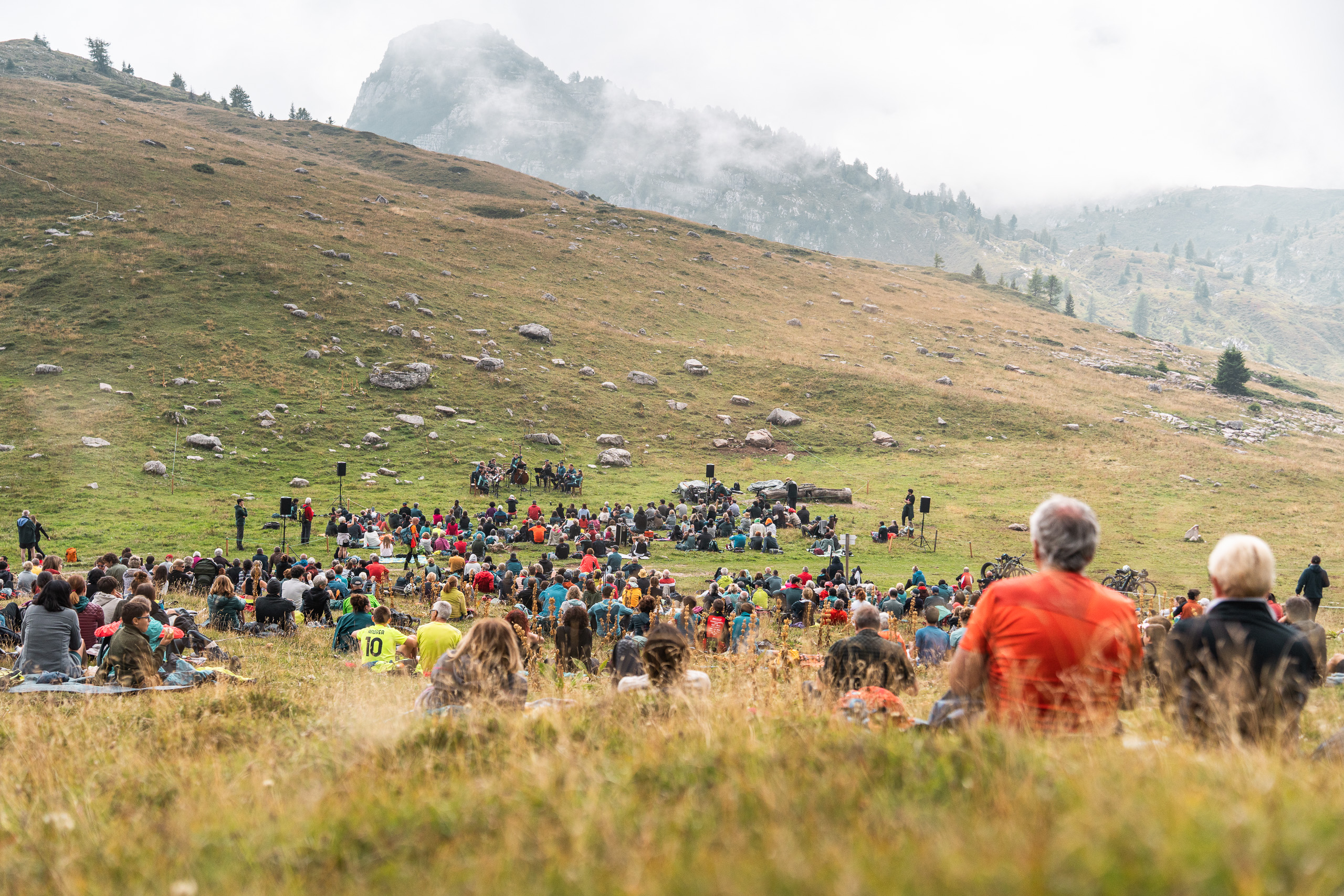 Le atmosfere della Vienna di Johann Strauss sono rieccheggiate tra le nebbie che avvolgevano le praterie alpine delle Dolomiti di Brenta attorno a Malga Tassulla. I musicisti dei celebri Wiener Philharmoniker hanno aperto l’edizione 2025 del Festival