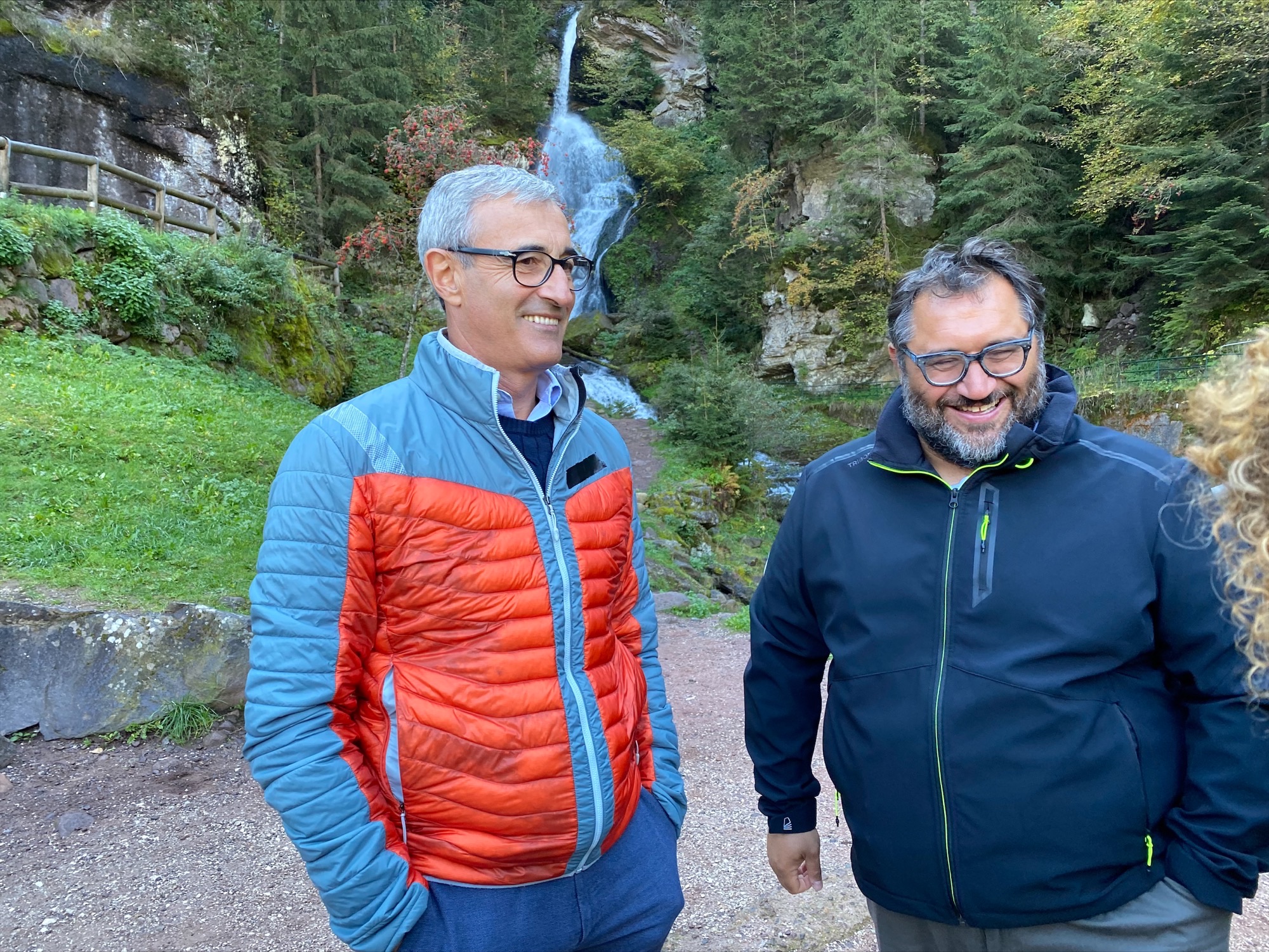 E accanto al legno, anche l’acqua che sgorga dalle rocce delle Dolomiti diventa preziosa ed è uno dei segreti del pastificio più alto d'Europa, quello di Riccardo Felicetti. La secolare alleanza tra l’uomo e la natura che si è instaurata in questa valle ha contribuito farne oggi un esempio virtuoso di economia circolare che ruota intorno al bosco e dove lo scarto diventa energia e calore. Un’economia della terra che si rispecchia anche nella viticoltura eroica della Val di Cembra, un territorio ricamato faticosamente dalla mano dell'uomo, che vi ha costruito più di 700 km di muretti a secco per sostenere i vigneti e le altre coltivazioni, creando un paesaggio rurale unico. Peppone non si è fatto scappare l’occasione della vendemmia e seguire così il profumo del vino che qui diventa anche aceto d'eccellenza e delle vinacce che vengono trasformate in grappa.