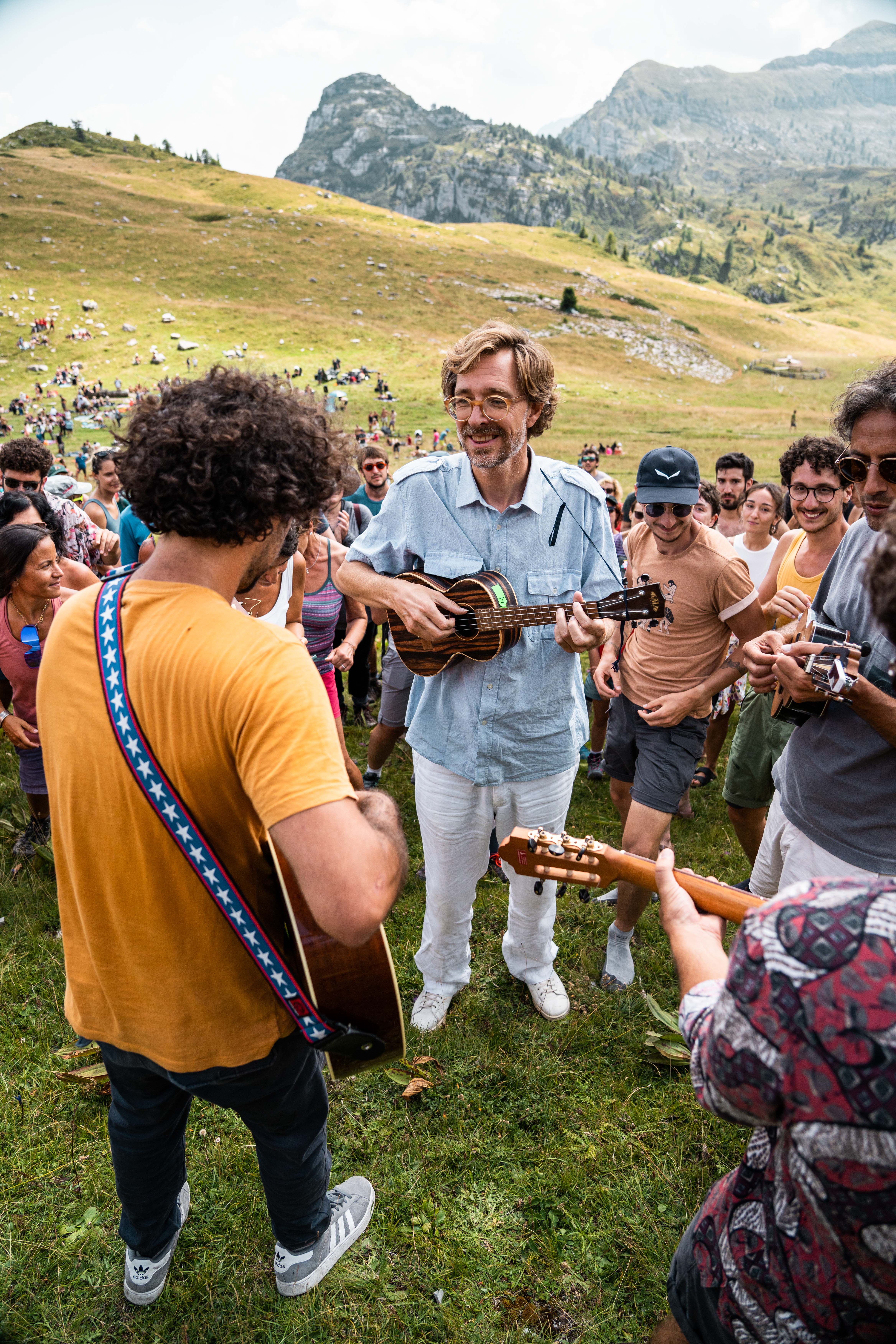 Dal Circolo Polare Artico, dove a fine luglio Erlend Øye ha tenuto un concerto, al Pian della Nana, lo stupore della bellezza della natura è stato il filo conduttore delle confidenze con cui l'artista ha introdotto ogni pezzo. Prima la generosità di Øye nel dare spazio ai suoi compagni a cui ha prestato la scena con i brani Amsterdam di Orofino e Topic di Castello, quindi il viaggio nella sua produzione, hanno riempito l'anima del numeroso pubblico. Un pubblico trasversale chi venuto perché fan, chi per I Suoni delle Dolomiti. Così il pubblico è stato invitato al Matrimonio di Ruggiero, ha rivissuto il novembre 2020, “con strane.regole che cambiavano ogni settimana “ come ha ricordato Øye, in Lockdown Blues. Fra le tante melodie proposte dalla suadente Altopiano alla vivace RainMan fino a Spider e la ritmata Paradiso che ha strappato l'applauso di Erlend con la sua Comitiva e l'esclamazione “Trentino che balla!”. E poi quel finale bellissimo, sulle note di Prego Amore, cantata e ballata con il pubblico tutto in piedi. Note e festa che per una giornata sono diventate un tutt’uno con i richiami delle marmotte e il suono dei campanacci delle mucche al pascolo.