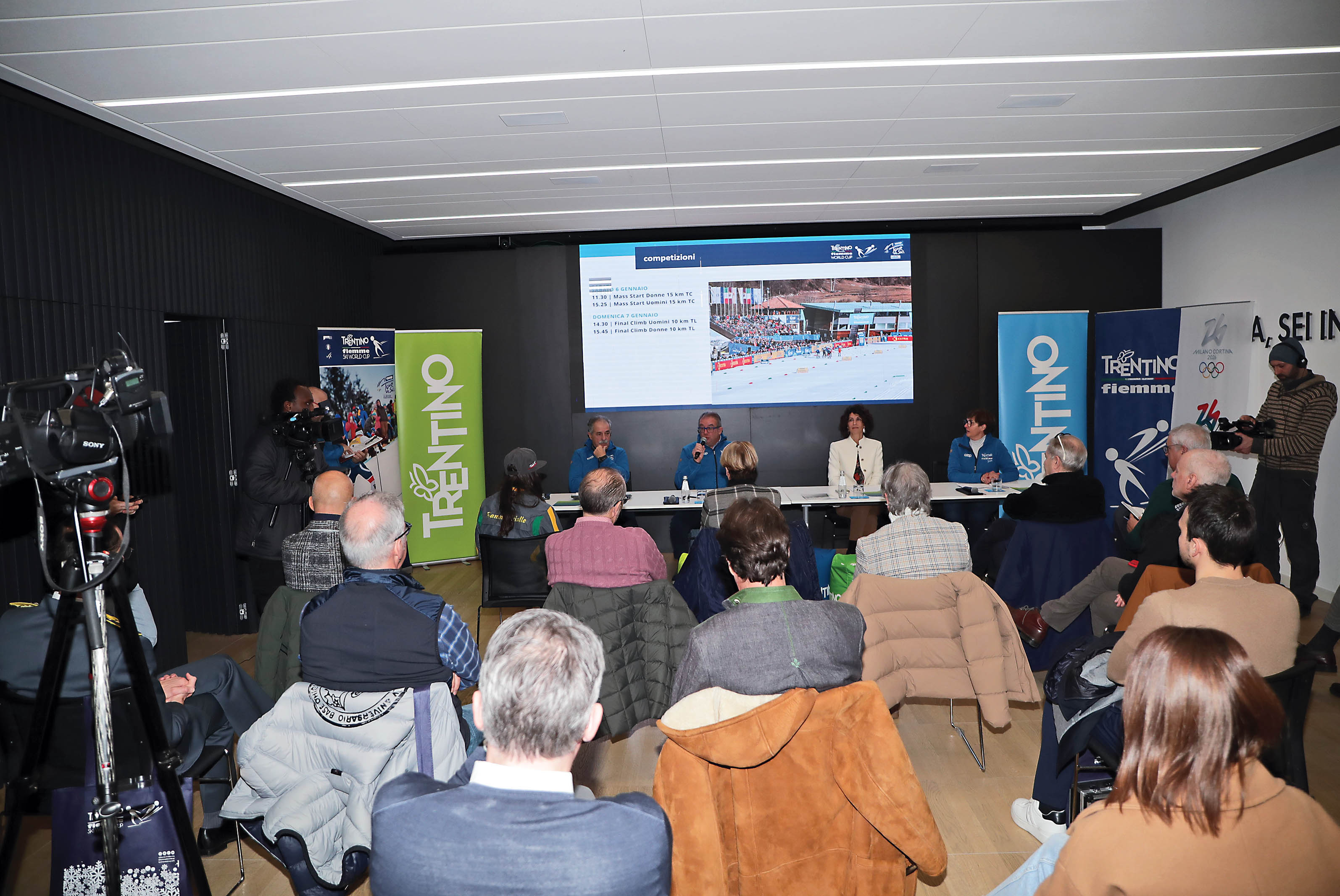 Molto partecipata la conferenza stampa della tappa di Tour de Ski in Val di Fiemme, svoltasi a Trento nella tarda mattinata di oggi presso la sede di Trentino Marketing, per presentare l’evento che andrà in scena questo weekend allo stadio del fondo di Lago di Tesero e sulla pista Olimpia III del Cermis.