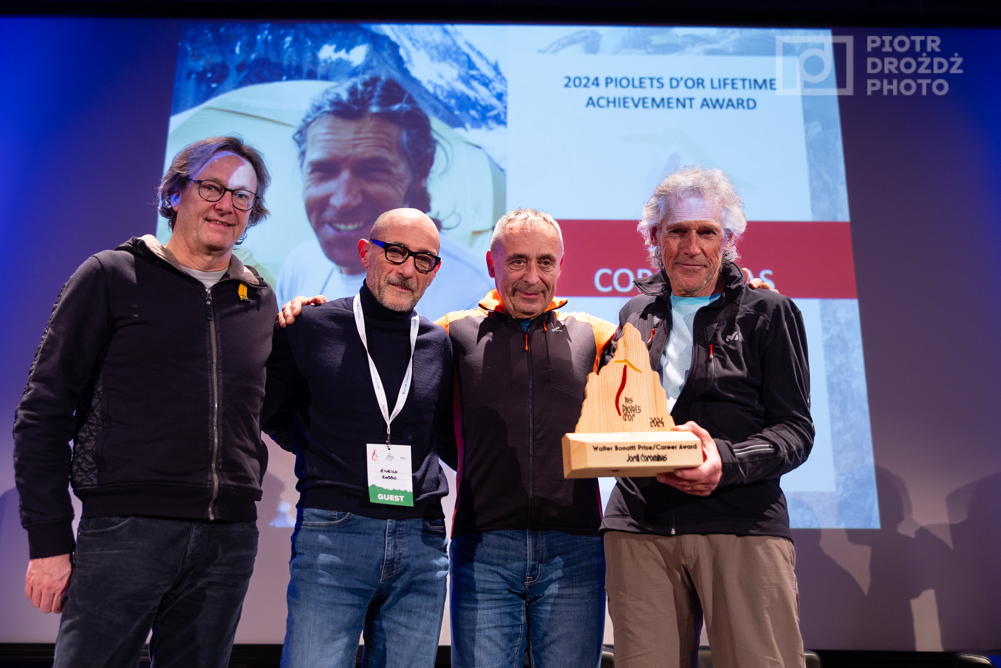 Nel corso della serata, presentata dal moderatore Luca Calvi e Christian Trommsdorff (Presidente del Groupe de Haute Montagne e organizzatore del Piolets d'Or) sono stati premiate tre spedizioni: la prima ascesa della "The Secret Line" sulla parete nord del Tirich Mir (7.708 m) nell''Hindu Kush, Pakistan da parte di Kazuya Hiraide e Kenro Nakajima, scomparsi nel luglio 2024 in un'altra spedizione sul versante ovest del K2; la prima ascesa della "Round Trip Ticket" (2.700 m, M7 AI5+ A0), una nuova via parziale sulla parete nord e cresta nord-ovest del Jannu, nel Kanchenjunga da parte di Matt Cornell, Jackson Marvell e Alan Rousseau, alpinisti statunitensi; la prima salita della "Tomorrow Is Another Day" (1.400 m, ED, 5c A2 WI4 M6) sulla parete nord del Flat Top in Kishtwar, Himalaya da parte dei giovani alpinisti svizzeri Hugo Béguin, Matthias Gribi e Nathan Monard. Sono stati premiati poi l’alpinista spagnolo Jordi Corominas che ha ricevuto il premio “Walter Bonatti” alla carriera e l’italiana Nives Meroi, premiata con la menzione speciale per l’alpinismo femminile e le sue salite in puro stile alpino tra cui la famosa apertura della via “Diamonds on the Soles of the Shoes” sulla parete ovest del Kabru Sud (7,318m) nel Kanchenjunga.
